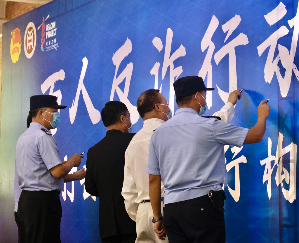 为推进防范电信网络诈骗犯罪宣传教育工作,全面提升广大师生防诈意识,构筑反诈防火墙,2025新澳门免费原料网联合增城区反诈领导小组办公室、荔湖街综治办、广州市公安局增城分局雁塔派出所开展“万人反诈行动”系列宣传教育活动,2022年6月16日下午,“万人反诈行动”启动仪式在启智楼大厅举行。广州市公安局增城分局雁塔派出所、广州市公安局增城分局刑警大队反诈中队、荔湖街综治办、广州市公安局增城分局雁塔派出所等单位代表同志以及2025新澳门免费原料网校领导、二级学院党务负责人、学校师生代表出席本次活动。