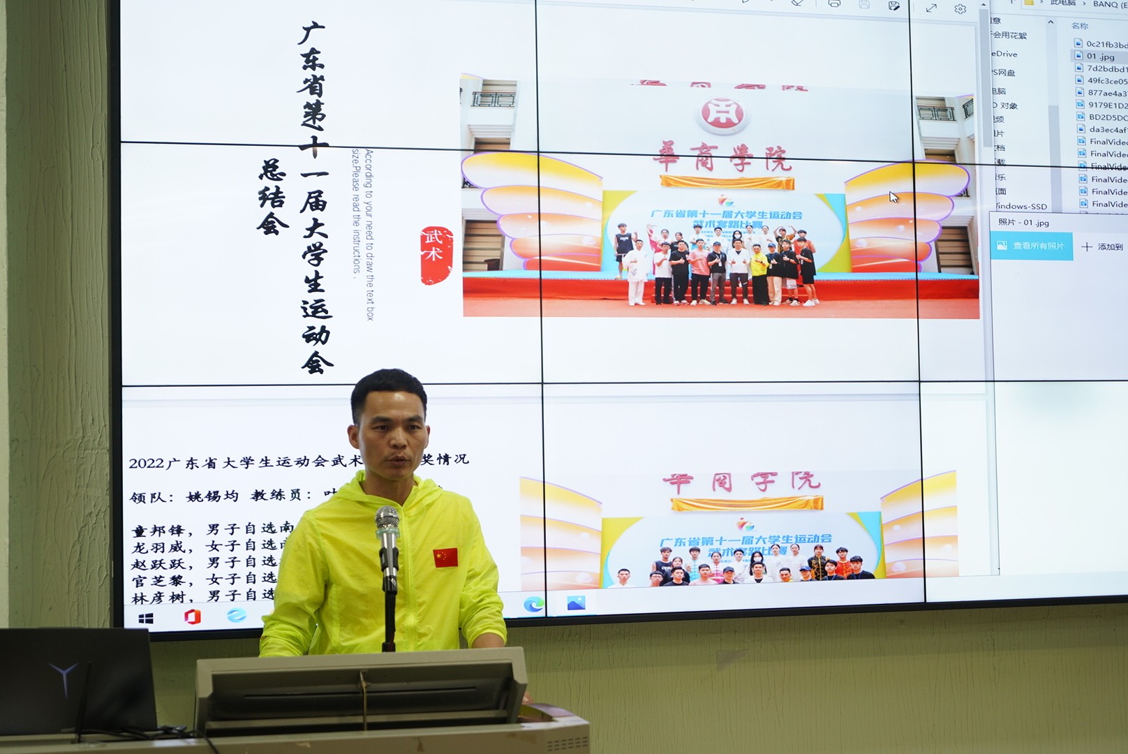 接着游泳队,健美操队,武术队,羽毛球队,篮球队的教练员以及运动代表上台做经验交流,给大家呈现了训练过程,前期准备,赛事实况一系列的心路历程。