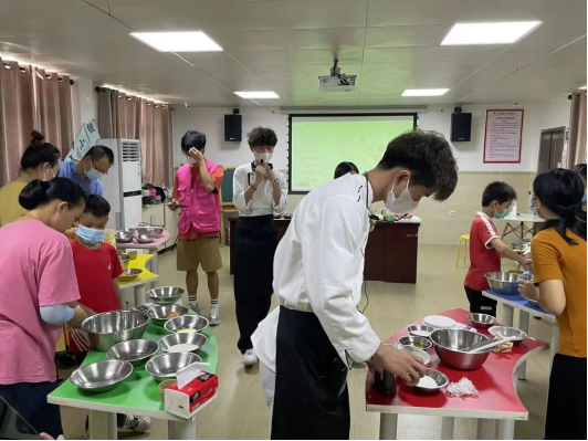 为了促进亲子间的沟通交流,培养感情,提升家庭亲密感,志愿队伍组织开展了亲子面点制作活动。活动中我院中西面点工艺专业的康梓云、吴悦胜等同学展示了专业技能特色,向大家传授面点制作流程和技巧,并进行示范操作,家长和同学们在认真听讲、观看后,有模有样地制作出点心。大家津津有味地品尝着自己的劳动成果,对我们开展的活动连声称赞!