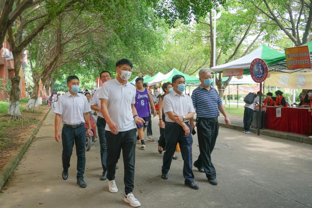 校领导来到迎新现场,检查各学院新生报到和迎新工作。学校加强整体统筹,各部门各学院多方协同,推进科学管理。老师和学生精心布置校园和大本营,营造浓厚而热烈的校园氛围。