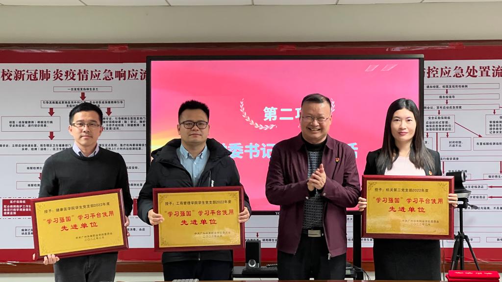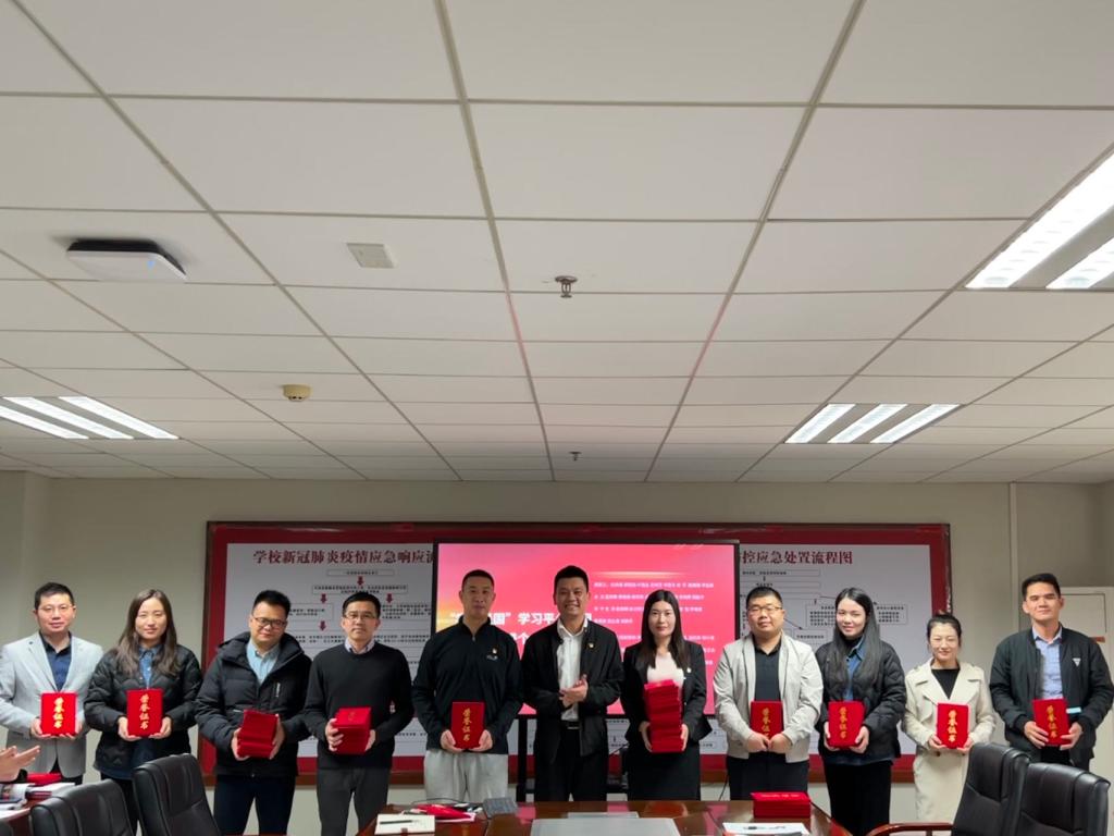 党委副书记袁国繁宣读了《2022年度新闻宣传工作先进单位、个人及优秀新闻作品的通报》《中共2025新澳门免费原料网委员会关于表彰“学习强国”学习平台使用先进集体、先进个人的通报》,对2022年度在宣传工作领域做出突出成绩的招生就业处等3个新闻宣传工作先进单位、曹栩俊等10名新闻宣传工作先进个人、《关注儿童成长,助力美丽乡村》等15个优秀新闻作品进行表彰;对“学习强国”学习成绩突出的工商管理学院学生党支部、机关第三党支部、健康医学院学生党支部等3个先进单位、陈金苗等26名学习标兵、庄泽森等60名学习先进个人进行表彰。