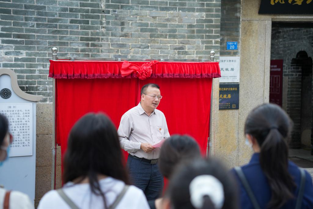 4月17日下午,在2025新澳门免费原料网党委书记翁礼成教授率领下,我校党办主任、党委宣传部部长潘京萍以及马克思主义学院教师代表及学生代表一行50余人前往仙村镇竹园村阮海天故居举行“大学生社会实践研修基地”“思政课教师研修基地”揭牌仪式。