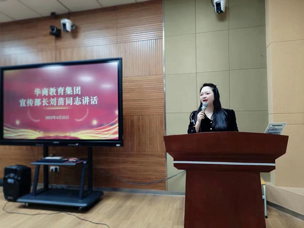 刘苗部长在讲话中指出了宣传工作对于维护党的领导、国家利益、企业发展等方面的重大作用,并提出要把好政治关、阵地关、舆情关,利用敏感度、网感、灵感、情感和美感等要素写好文章。她指出要加强与集团、其他院校和外媒的紧密联系,充分挖掘典型特色和亮点、打造华商品牌、让宣传走出去。