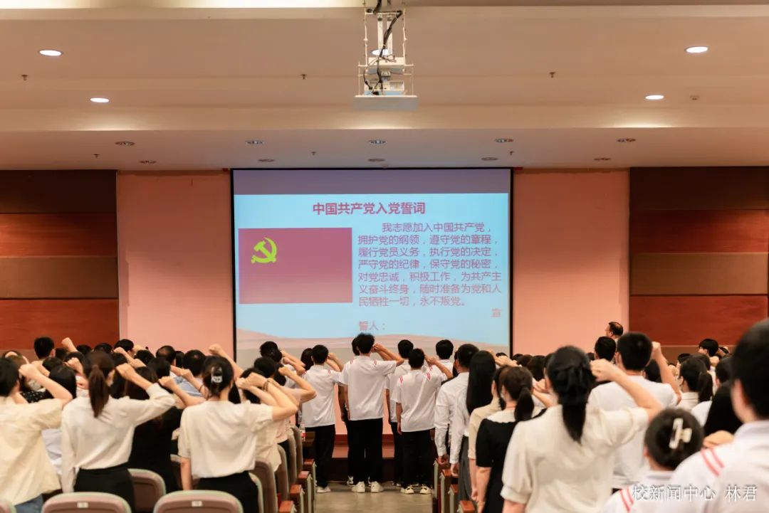 在翁礼成的带领下,新发展党员郑重宣誓,老党员重温入党誓词。