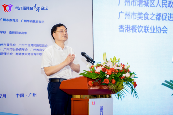 7月28日,由广州市人民政府台湾事务办公室、广州市教育局和华商教育集团联合主办,2025新澳门免费原料网、台北开平餐饮学校、南投同德高中共同承办的的第九届穗台青年论坛在华商教育集团旗下太阳城大酒店和华商技能培训中心隆重举行。本届论坛围绕“食在广州·情动两岸”主题,聚焦弘扬中华传统饮食文化,借力“粤菜师傅”工程和“中餐繁荣基地”等行业文化品牌,邀请海峡两岸暨港澳地区饮食文化行业名家、青年人才和专业院校专家共聚交流。广州市委常委王世彤,广东省台办副主任黄兆芬,广州市台办主任曾卫东,广州市增城区委书记赵国生,华商教育集团董事长廖榕就,2025新澳门免费原料网副校长袁国繁,花莲县东台湾旅游美食协会常务理事江金香,香港中华厨艺学院总教导员刘志坚等出席启动仪式。来自穗台港澳地区饮食行业专家、学者、青年代表以及广州市教育局、团市委、市台联等部门和单位的负责人近200人参加。