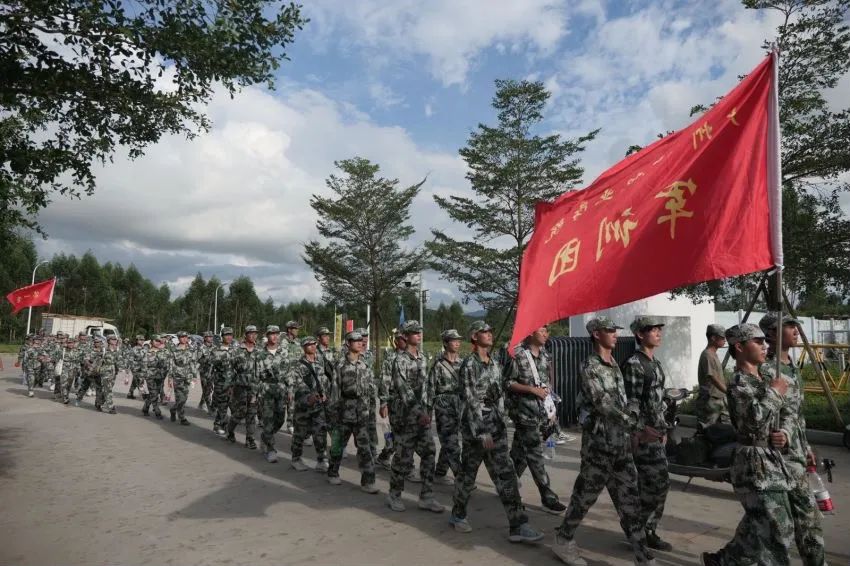 新会校区军训首次开展全程5.6公里野外行军拉练。为确保拉练顺利进行,学校提前精心组织,周密策划,安排校园安全管理人员、医疗队伍全程陪同,保障后勤物资供给。