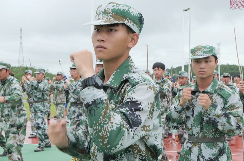 大一新生统一身着戎装,在教官的一声声口令中,学生们眼神明亮,步履坚定,背脊挺直,口号洪亮,队形整齐。展现出高度的团队凝聚力。