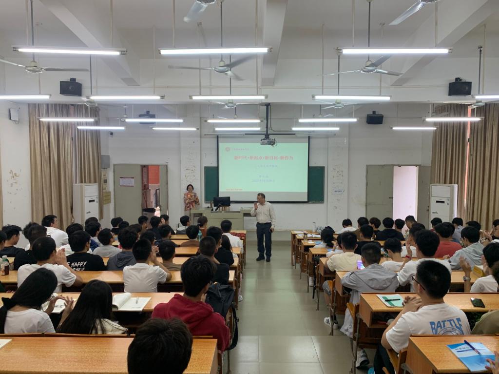 为全面推进“大思政课”建设,切实发挥思政课立德树人关键课程作用和马克思主义理论学科引领作用,把思想政治教育贯穿学校人才培养全过程,10月9日,在博学楼B101,学校党委书记翁礼成走上讲台,为2023级新生讲授题为“新时代﹒新起点﹒新目标﹒新作为”的“思政第一课”,勉励广大新生奋进新征程、建功新时代,为实现中华民族伟大复兴贡献青春力量。马克思主义学院叶教授、副院长兼马克思主义学院与通识教育中心党支部书记李靖及130多名2023级新生参加了课程。