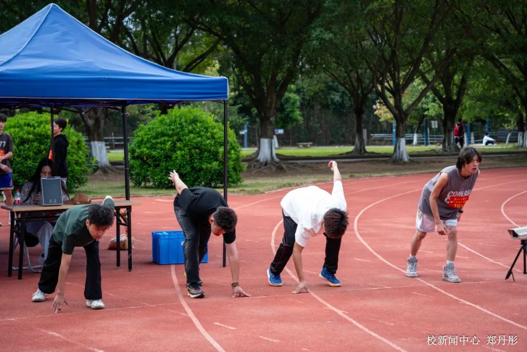 上午所有参与测试学生准时到达西区田径场集合,在老师的指挥下排队做好准备活动,充分拉伸身体,以降低自己在测试过程中身体受伤的风险。准备活动结束后,学生统一进行项目测试。