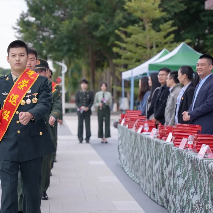 退役复学学生带来精彩的队列展演,一套套标准整齐的动作,充分展示了中国军人的优良作风,赢得场下阵阵掌声。