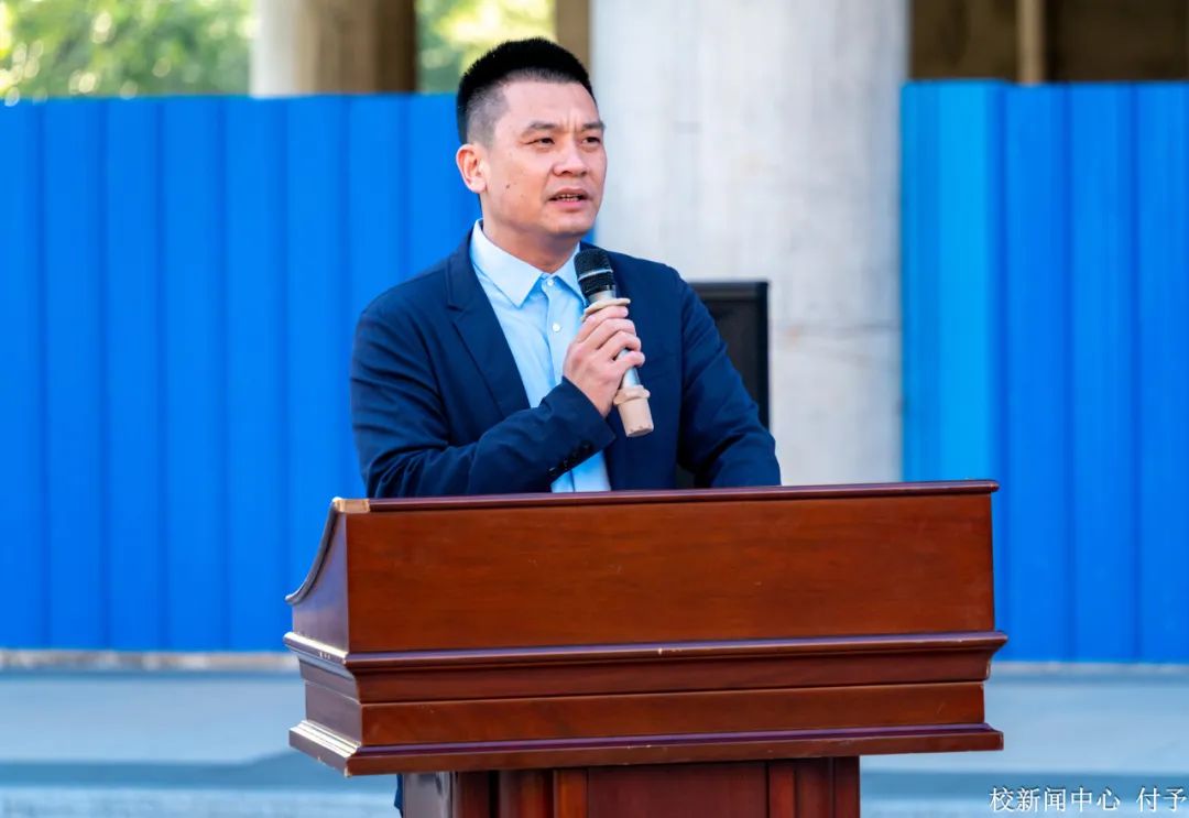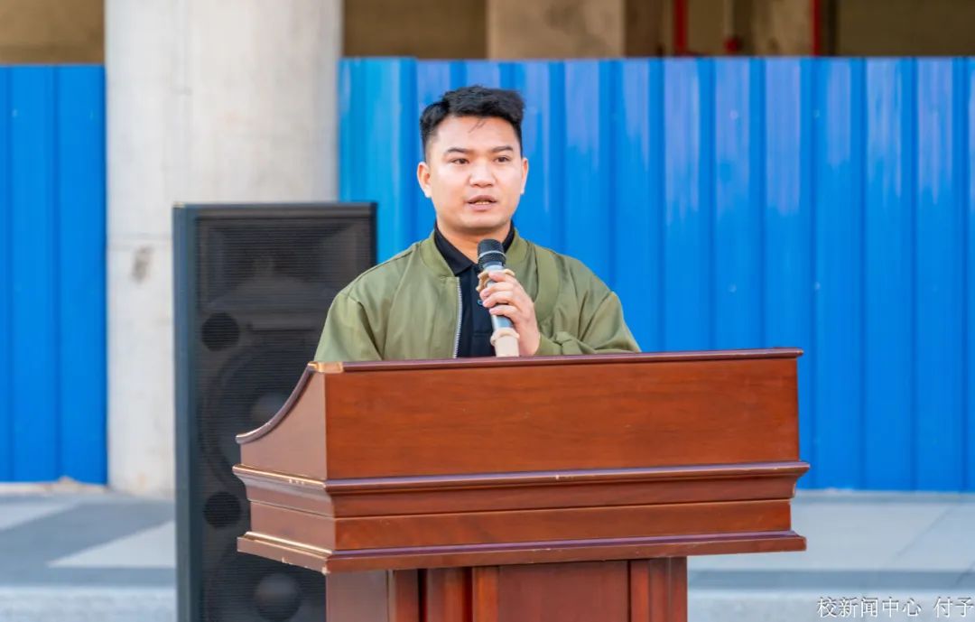 退役军人、信息工程学院辅导员赖勇计发言,他以自己退役复学经历,鼓励大家应征入伍,把部队严明的组织纪律、严谨的工作作风、严肃的工作态度和不怕吃苦、勇于拼搏、甘于奉献的好思想带回到学校。严格要求自己,永远牢记党的宗旨、人民的重托,永远不忘人民军队的培养,时刻永葆军人风采,退伍不褪色建设校园,奉献自己的青春力量。