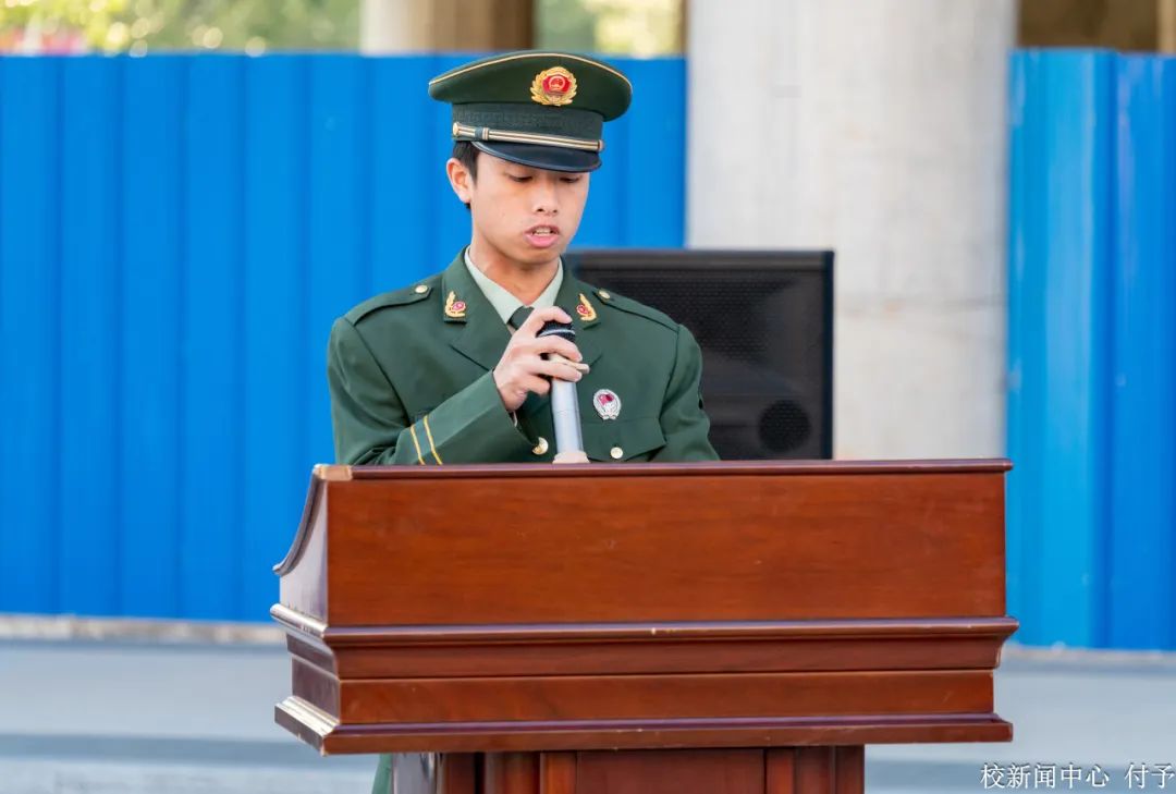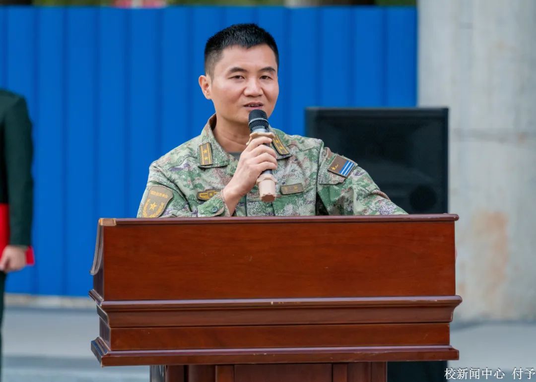 退役学生代表刘海霖发言。他表示,退役复学学生要树立目标,努力做到,一是继续保持军人作风,把军人的优良作风带到学习工作中去;二是尽快完成角色转换,积极融入大学生活中;三是认真做好未来规划,积极付诸实践,不负青春,不负韶华。