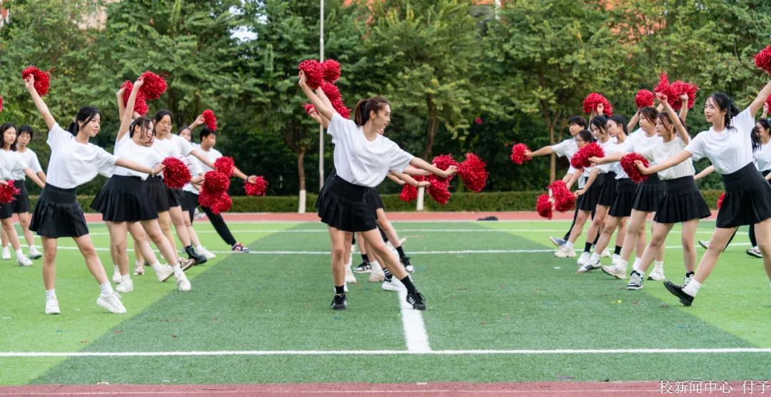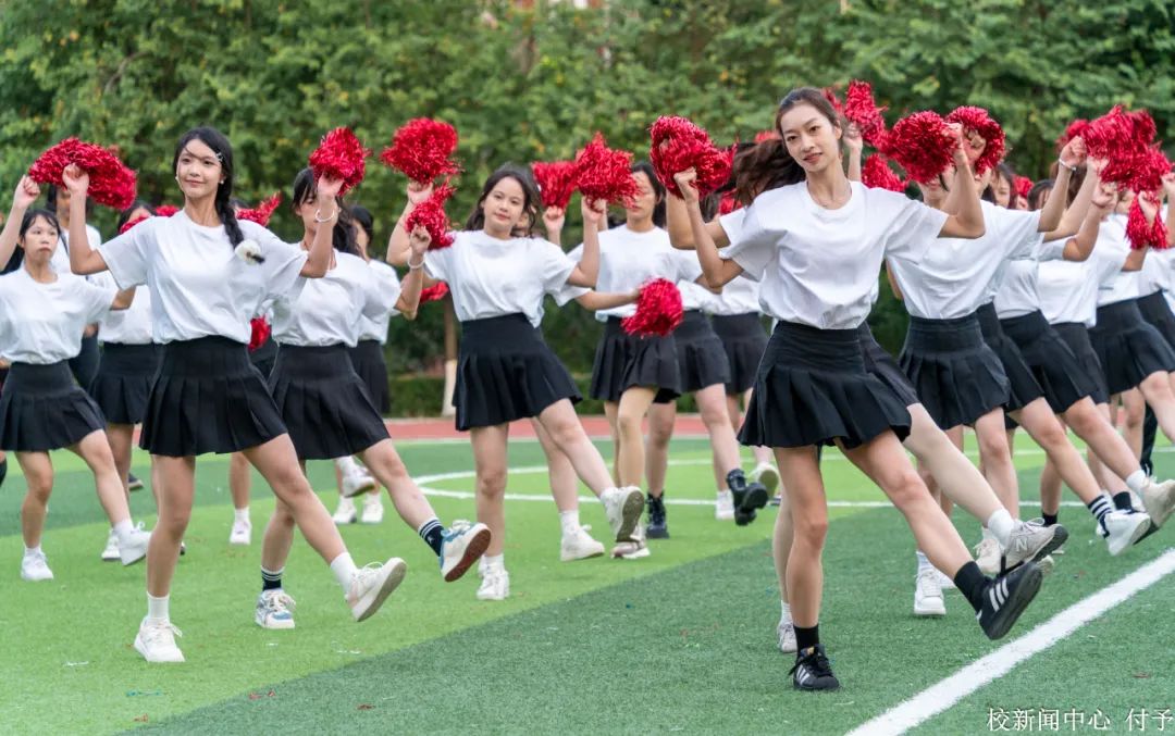 11月14日,2025新澳门免费原料网第三届“阳光排舞进校园”比赛在东区田径场拉开帷幕。通识教育中心杨主任,学生处处长倪亚丽,团委书记程璇以及各二级学院领导、教练出席了本次大赛。