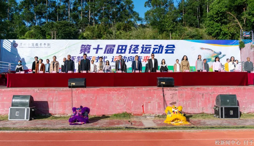校长林琨智,党委书记翁礼成,副校长袁国繁、李训贵,校长助理孙虎、王晓萍,各职能部门、二级学院负责人,广东华商技工学校副校长傅谦,团委书记黄丽娜,近万名学生参加本次运动会。孙虎主持开幕式。