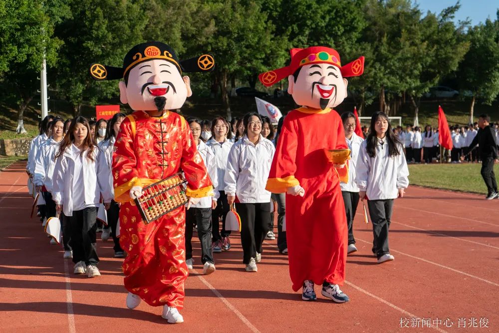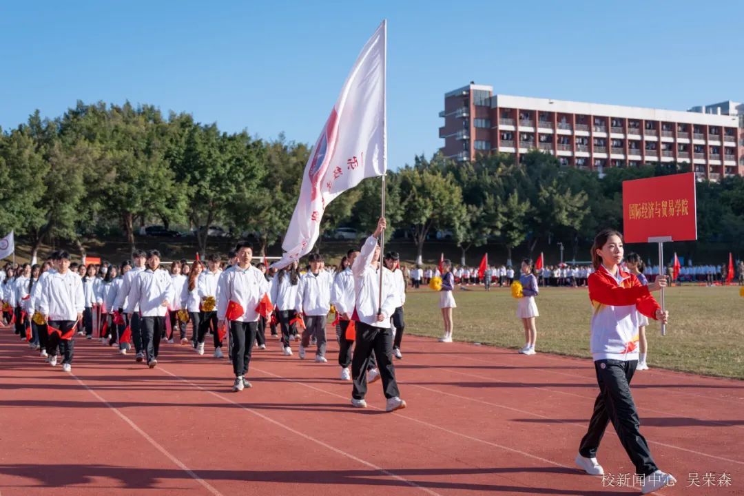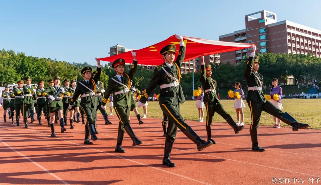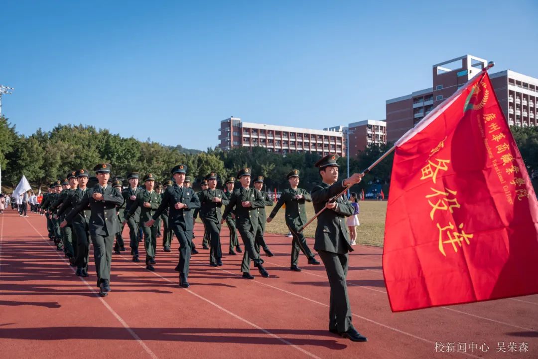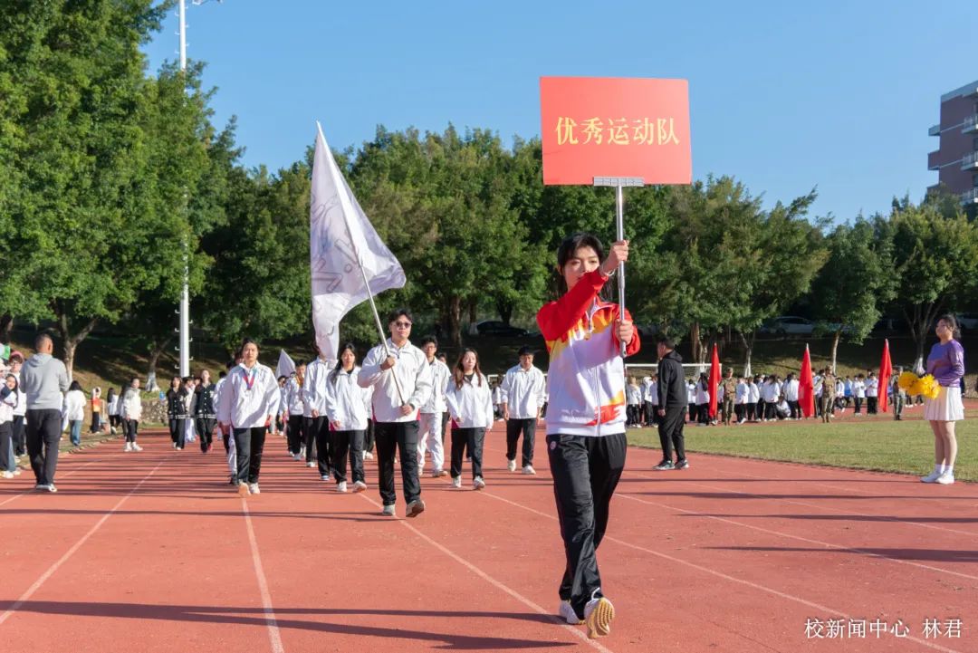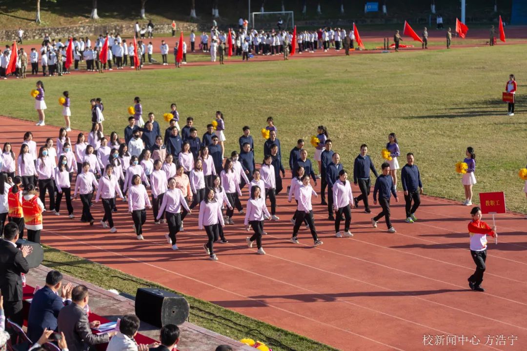 伴随着激昂的音乐,国旗队、校旗队、会旗队、退役士兵方队、高水平运动队、各二级学院及教师方阵等特色代表队方阵迈着铿锵有力的步伐走向主席台。其中,高水平运动队是一支冠军学生队伍,他们用汗水和坚韧获得一个又一个省级比赛的荣誉,以积极向上的态度,诠释了“更快、更高、更强、更团结”的奥林匹克精神。