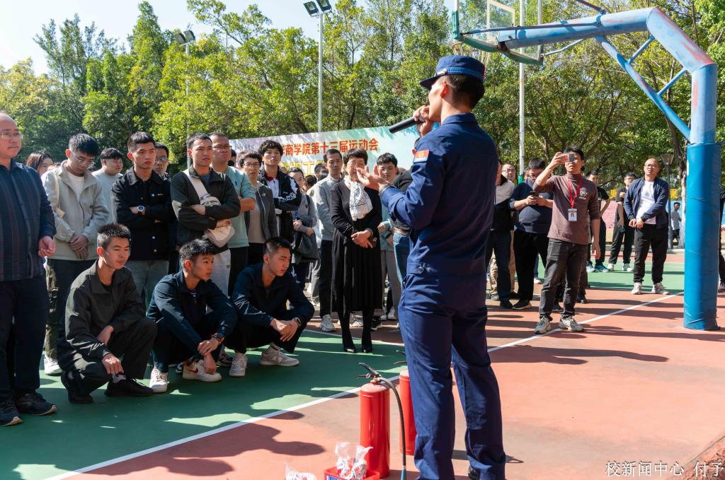 消防救援大队还带领教职工代表、学生代表来到西区田径场开展灭火实操演练安全指导,展示灭火器以及呼吸面罩的正确使用方法,使师生对消防器材的使用方法及注意事项有了更全面的了解。