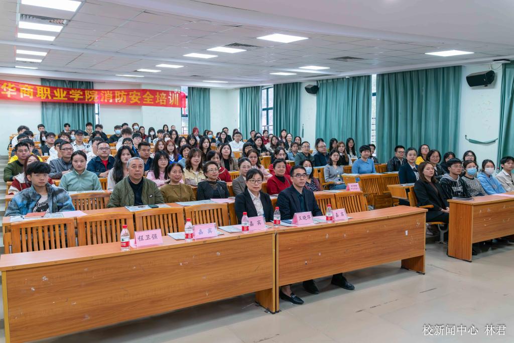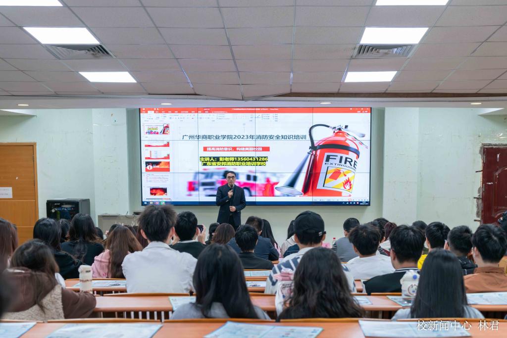 为进一步做好全校师生员工消防安全宣传教育工作,根据增城区消防救援大队和教育局的工作要求,11月21日,我校联合增城区消防救援大队,在全校范围开展安全培训及实操演练活动,活动设2个会场,分别在博学楼C101、会议中心4楼报告厅举行。参会人员有广州市增城区消防救援大队消防宣传员程卫强、消防宣讲团成员彭多清,副校长李训贵,校长助理王晓萍,各教学教辅单位负责人及学生代表。