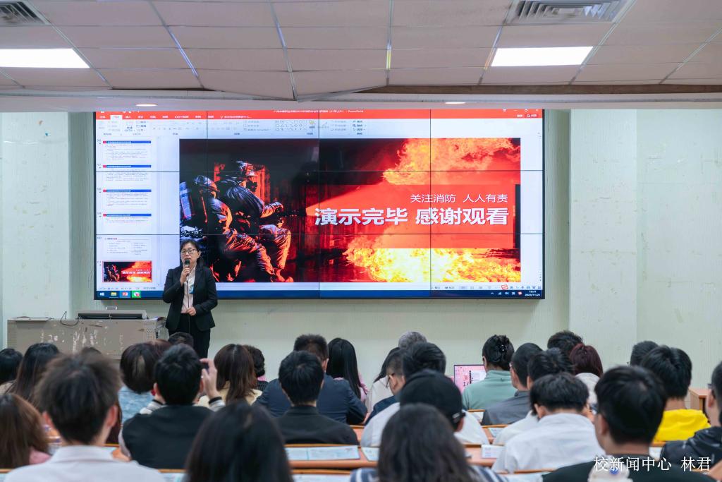 王晓萍在博学楼C101作总结讲话。她强调,校园安全是师生幸福生活的保证,更是学校高水平发展的首要前提。今后学校将继续加强与当地消防部门合作,开展更多的消防安全宣传培训活动,为全体师生提供更加全面的安全保障。同时也希望全体师生能够认真对待消防安全,时刻保持警惕,共同维护学校安全稳定。
