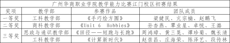 本次初赛由思政与通识教学部、工科教学部、商科教学部派出15名教师组成4支队伍参加比赛。