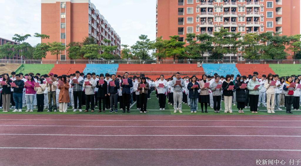 为了进一步普及宪法知识,弘扬宪法精神。12月4日上午,我校在东区田径场举行升旗仪式暨第十个国家宪法日宪法晨读活动。党委书记翁礼成、党委办公室主任潘京萍、学生处副处长李平等1000余名师生参加本次活动。