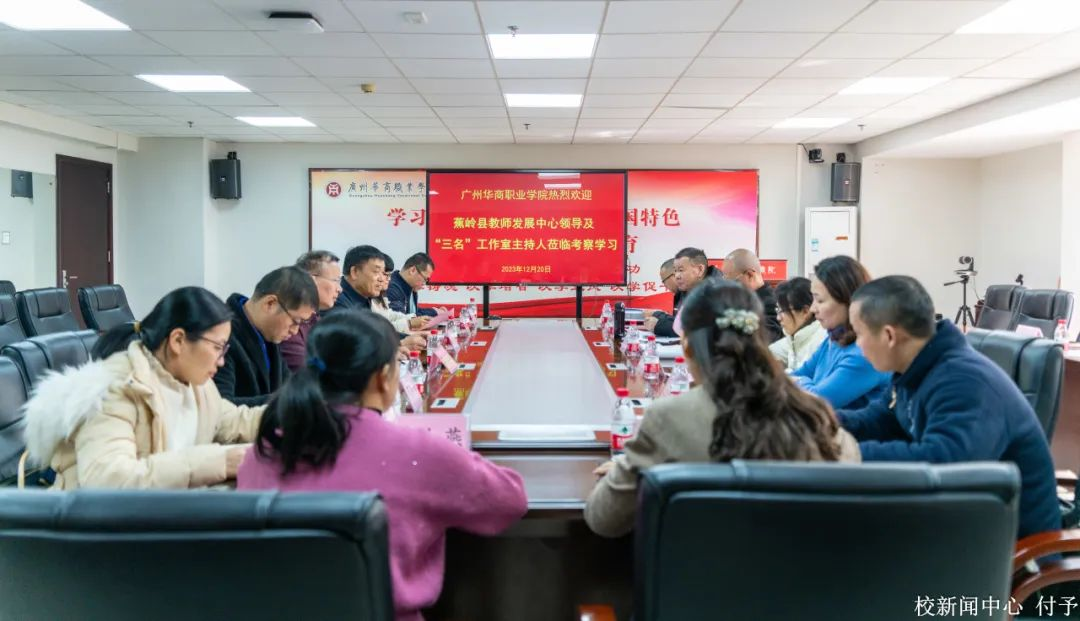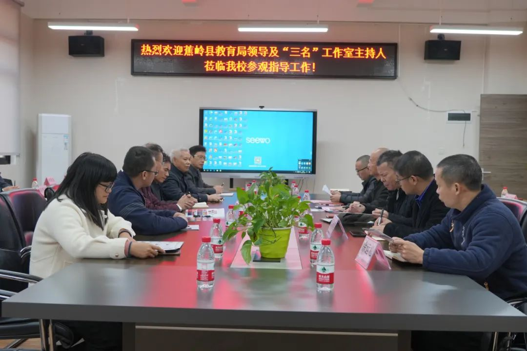 为贯彻落实《中共广东省委 广东省人民政府关于全面深化新时代教师队伍建设改革的意见》(粤发〔2018〕25号)《广东省人民政府关于印发〈广东省推动基础教育高质量发展行动方案〉的通知》(粤府〔2021〕55号)《全口径全方位融入式帮扶粤东粤西粤北地区基础教育高质量发展工作考核评价办法(试行 》等文件精神,深入贯彻落实省委、省政府关于推动基础教育深化改革高质量发展的意见,支持粤东粤西粤北地区基础教育工作,2023年12月20日,蕉岭县教师发展中心主任丘安清、副主任钟淼炎、培训班副部长左勇以及“三名”工作室主持人(名校长园长工作室主持人、名班主任工作室主持人、名教师工作室主持人)一行13人莅临我校开展对接帮扶工作交流学习。