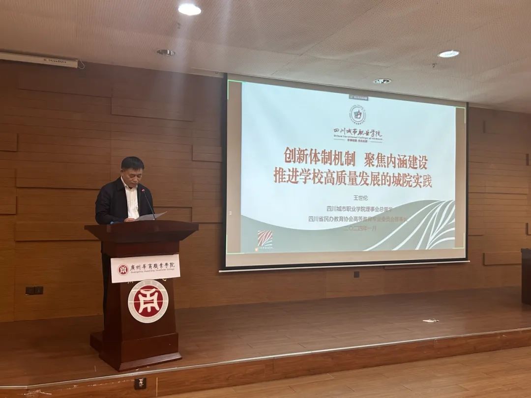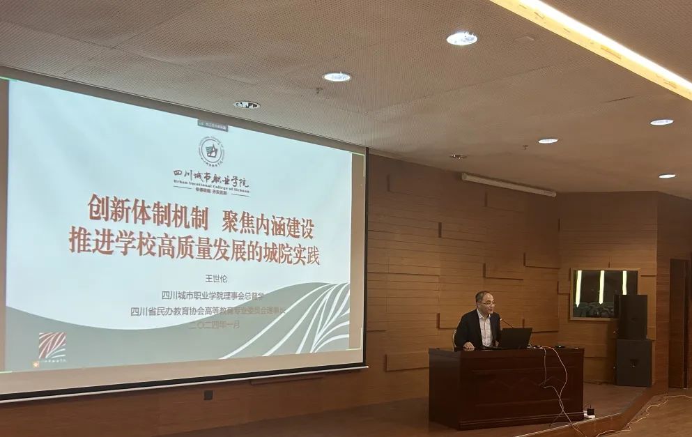 11日上午,四川城市职业学院理事会总督学、四川省民办教育协会高等教育专业委员会理事长王世伦作题为“创新体制机制 聚焦内涵建设 推进学校高质量发展的城院实践”的专题报告,报告由校长林琨智主持。