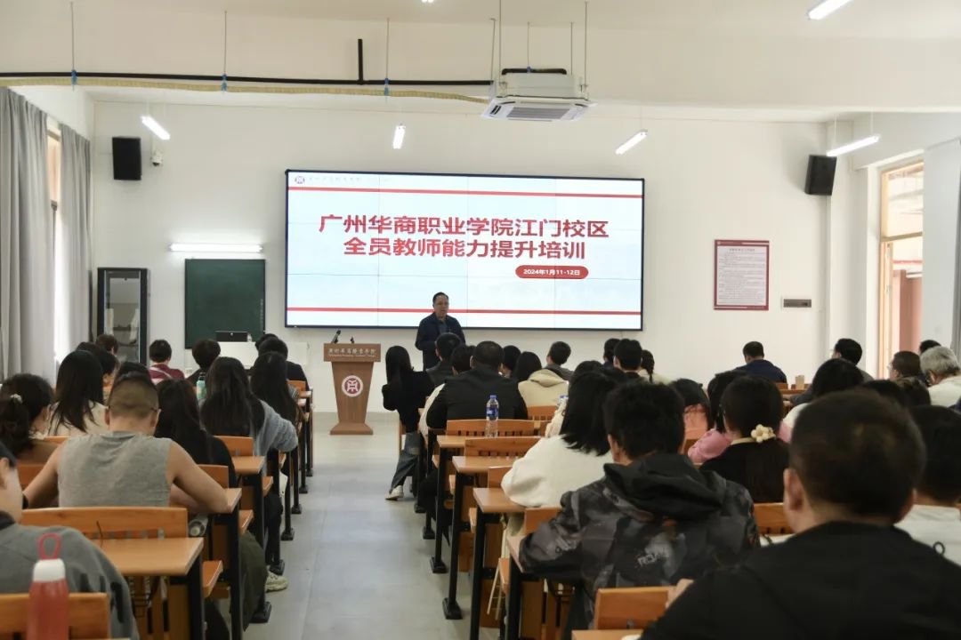 为进一步提升全校教师能力和水平,我校在1月11—21日举办为期11天的全员教师能力培训班,以专题讲座、说课比赛、新入职教师岗前培训等多种形式开展。培训班线上线下同步进行,在广州校区和江门校区共设4个会场。华商教育集团董事长廖榕就,我校校长林琨智、党委书记翁礼成、副校长袁国繁、余家军、黄俊斌及全体中层干部、教师参加会议。