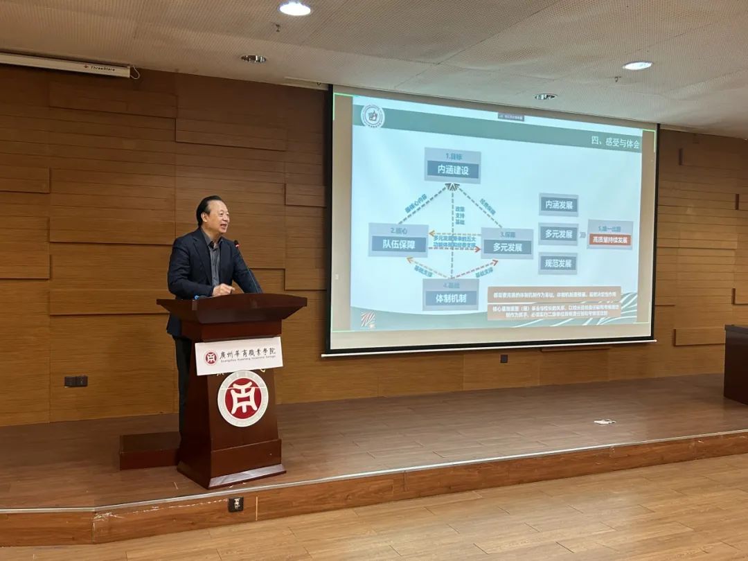 廖榕就董事长就该报告作总结讲话,他指出,王教授的民办高校高质量发展专题报告既有坚实的理论基础又有广阔的应用场景,既有丰富的现实案例又有具体的实践举措,为华职未来发展提供建设思路和参考路径。