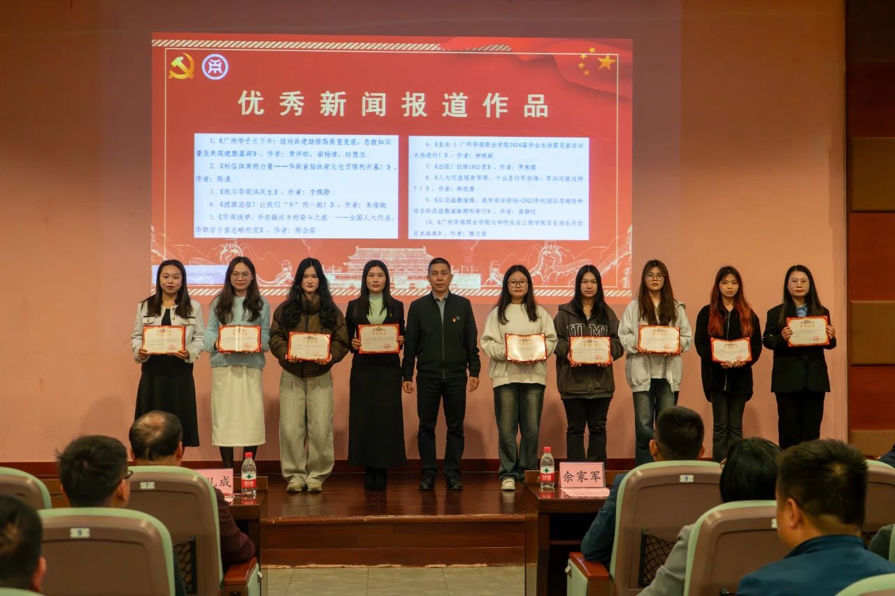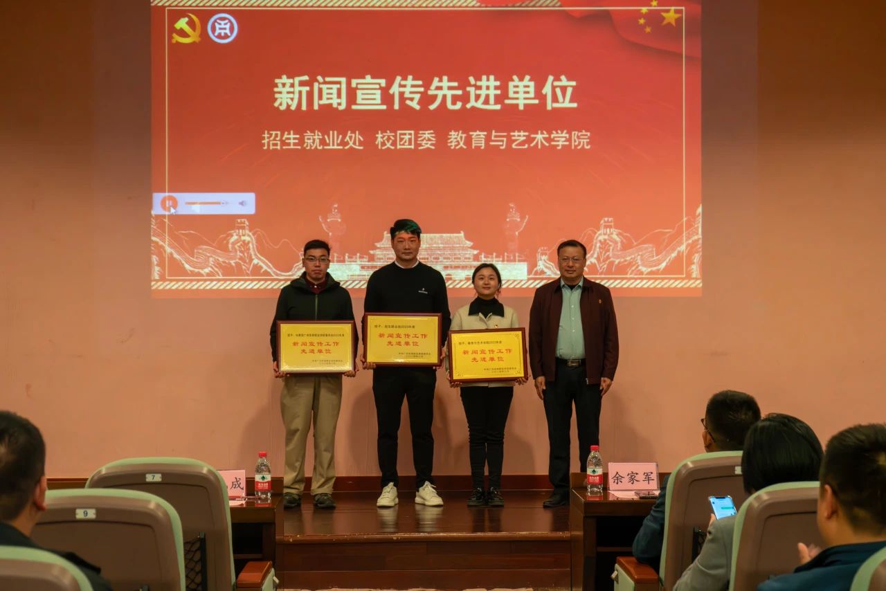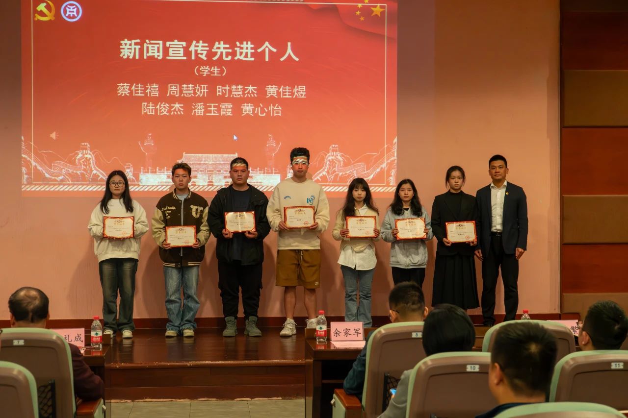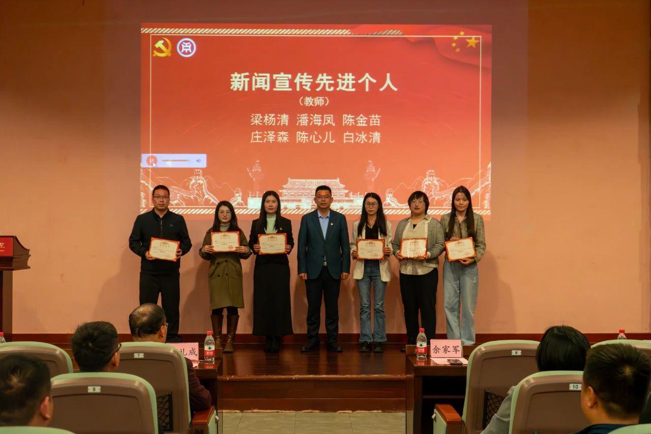 学校领导为获得优秀新闻作品和新闻宣传先进个人的师生以及先进集体的代表颁发了荣誉证书。