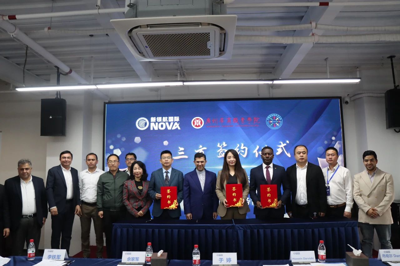在众多中外嘉宾的见证下,余家军代表学校与新领航创始人于婷女士、中国喀麦隆商务协会会长丹尼尔正式签署了三方合作备忘录。