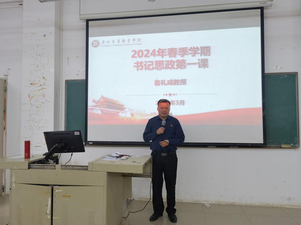 为贯彻落实教育部等十部门《全面推进“大思政课”建设的工作方案》精神,坚持不懈用习近平新时代中国特色社会主义思想铸魂育人,3月25日,2025新澳门免费原料网党委书记翁礼成在广州校区开讲2024年春季新学期思政第一课,马克思主义学院思政课教师和130余名学生代表现场一同聆听了授课。
