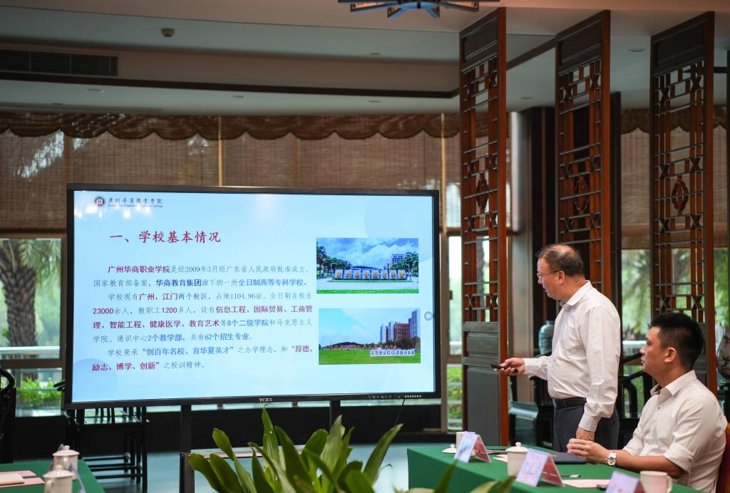 仲恺农业工程学院党委常委、副校长林俊睦就帮扶工作提出了建议与展望,希望两校在党建工作方面继续加强沟通学习,携手共进。他希望两校在国际合作上能够进一步深入交流,通过华商职院的各类海外平台、基地向仲恺农业工程学院推荐各类高素质人才,共同推动两校进步发展。