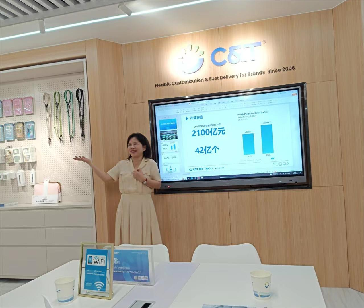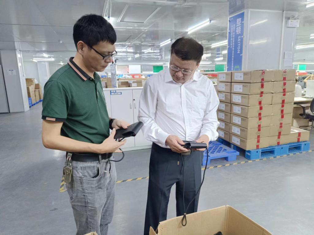 随后,翁书记一行来到广州泰晟时尚科技有限公司参观交流。该企业投资人钟顺彩总经理介绍了公司情况。据了解,该公司以产品研发和销售为主,主要业务是创意手机壳、平板壳套及各类皮包创意产品;产品销售到欧洲等全球各地;公司员工300多人。