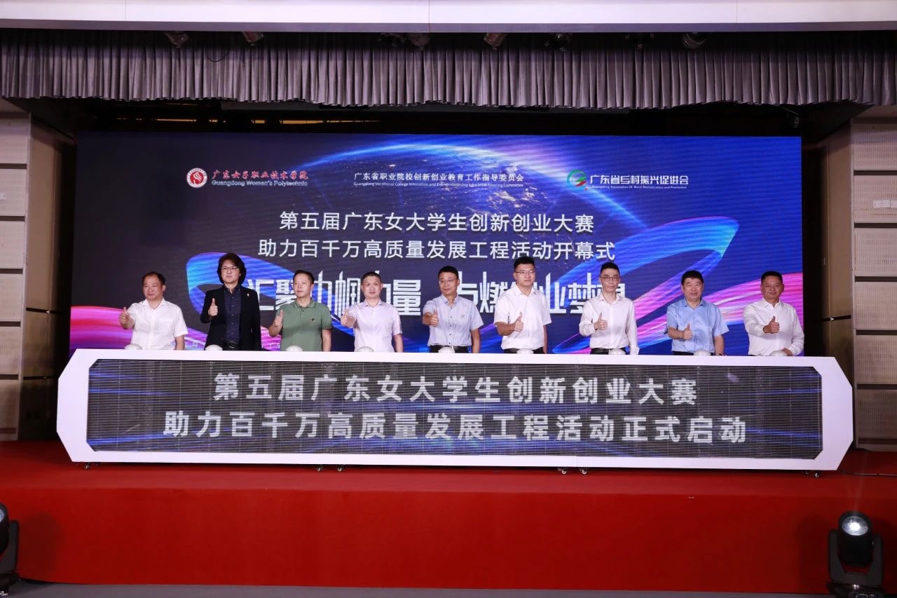 会上,举行启动仪式,在与会领导嘉宾等的见证下,“第五届广东女大学生创新创业大赛助力百千万高质量发展工程活动”正式启动。