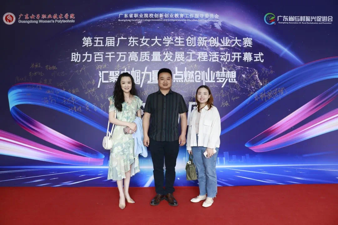 2024年5月17日,由广东省教育厅、广东省农业农村厅指导,广西壮族自治区人民政府驻广州办事处支持,广东女子职业技术学院、广东省职业院校创新创业教育工作指导委员会、广东省乡村振兴促进会、广东粤城产业发展有限公司联合主办的第五届广东女大学生创新创业大赛助力百千万高质量发展工程活动开幕式在广电城投686创意园(广东广播电视台)国际会议厅隆重举行。大赛组委会主任、广东省乡村振兴促进会会长、原广东省农业农村厅二级巡视员陈文,大赛指导单位、支持单位,以及大赛组委会、专委会、执行委的领导嘉宾,近50所参赛高校的师生代表,淘宝直播、京东零售等新媒体平台代表共200多人出席活动。我校受邀参加本次开幕式,创新创业学院院长荣少林、校企合作办公室副主任潘虹、关沛琪老师一行三人前往参与。