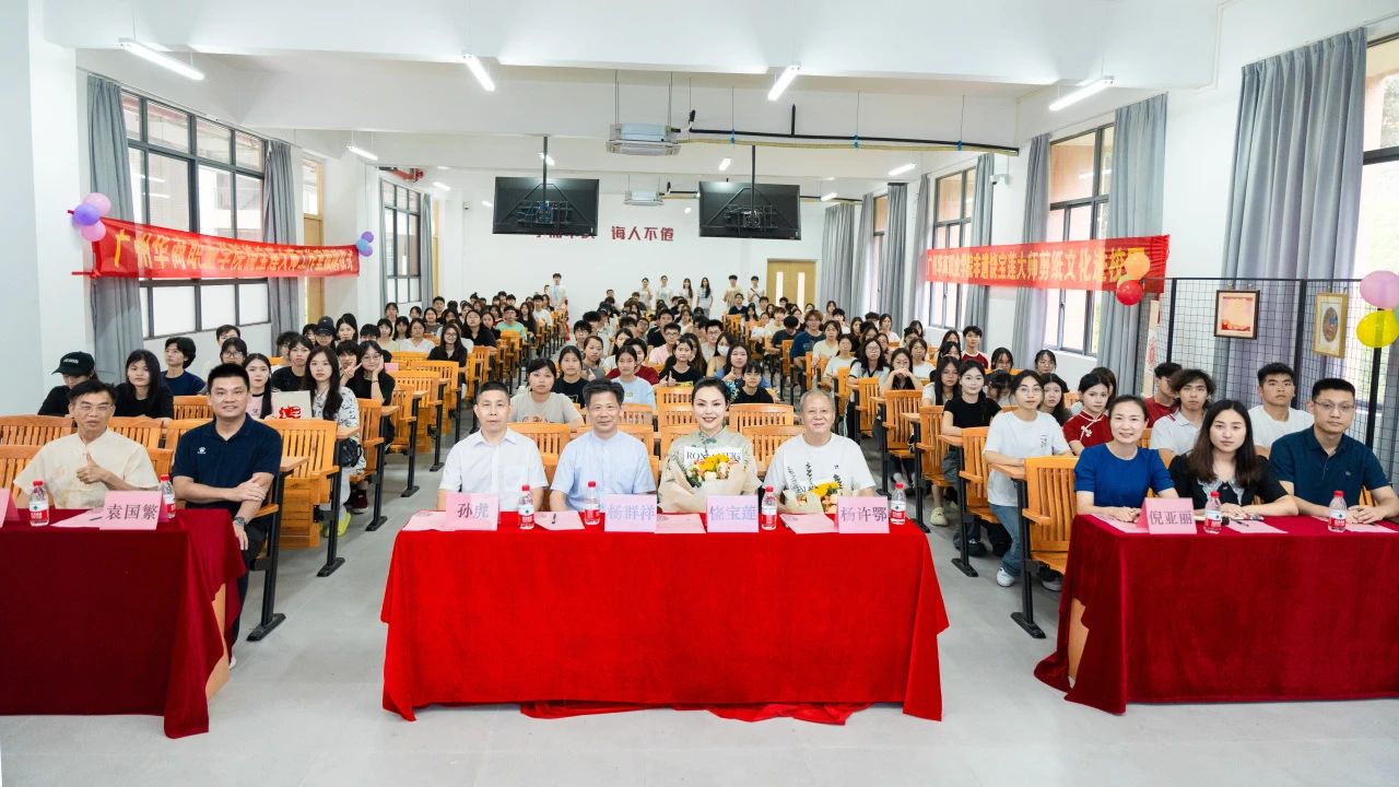 杨群祥执行董事致欢迎辞,他高度赞扬了饶宝莲大师在剪纸艺术领域的卓越成就,并表示饶宝莲大师身上有三点特质非常值得全体师生学习:一是对中国优秀传统文化的敬重与传承;二是精益求精、追求卓越的工匠精神;三是对中国优秀传统文化的守正创新。