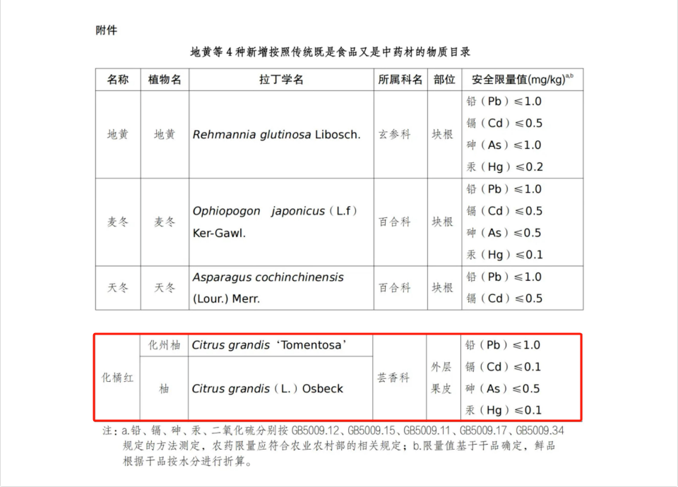 廖志略表示,化橘红药食同源申报成功,不仅有助于保留和传承乡村的特色文化,增强乡村的文化底蕴和吸引力,更能促进化橘红产业升级和地方经济发展,带动相关种植、加工、销售等环节的发展,为乡村创造更多的就业机会和经济收入,让农民对自身的传统文化产生自豪感和认同感,增强他们对乡村发展的积极性和投入度,助力乡村振兴高质量发展。念念不忘,必有回响。8月26日,食品安全标准与监测评估司发布相关文件,根据《中华人民共和国食品安全法》及其实施条例、《按照传统既是食品又是中药材的物质目录管理规定》,经安全性评估,将地黄、麦冬、天冬、化橘红等4种物质纳入按照传统既是食品又是中药材的物质目录。