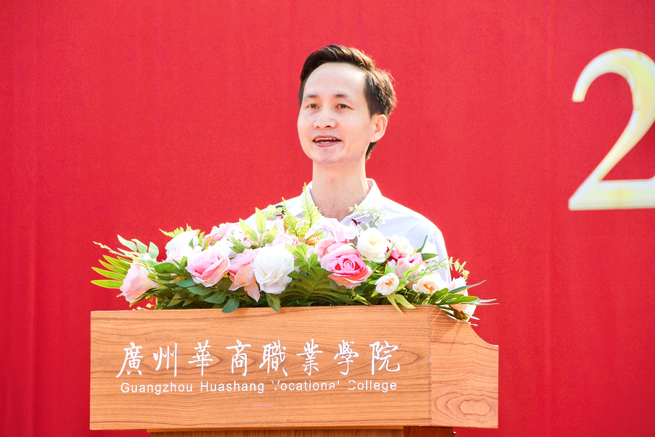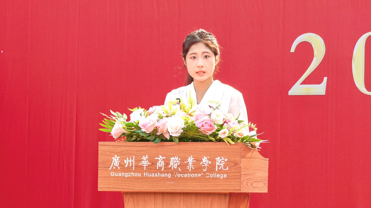 老生代表陈婉欣上台发言,她以自己创立并发展英歌舞社团的经历,鼓励新生们珍惜在华职的每一天,刻苦学习,不断提升自我。她表示华职是梦想启航的地方,让大家经历学习与实践的洗礼,从依赖走向独立,收获成长与坚韧。她激励新生们勇敢面对各类挑战,相信每一次跨越都是成长的宝贵财富。