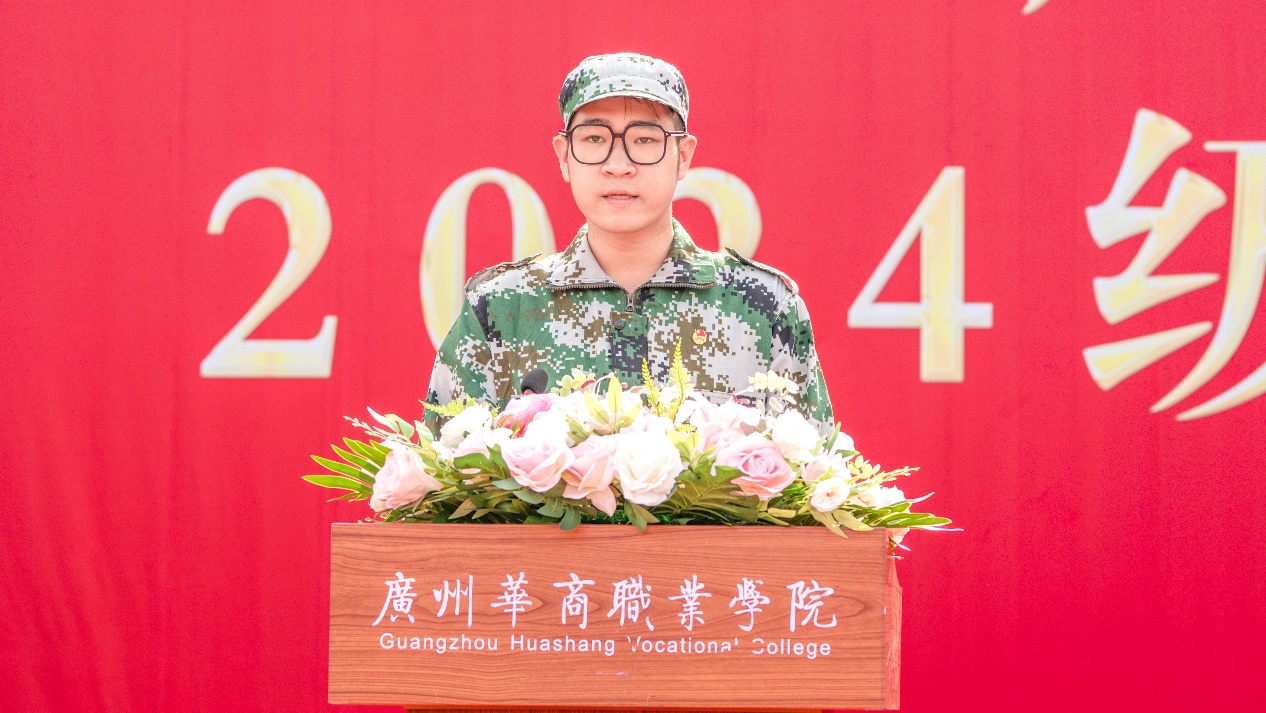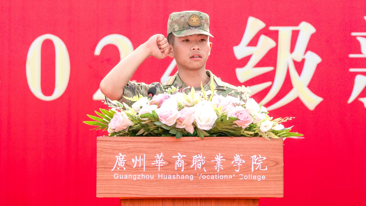 军训团教官代表邱卓坤进行了庄严的宣誓。他表示将严格按照军训计划和要求,认真履行职责,以良好的军事素质和严谨的工作作风,为新生军训工作提供有力保障。同时,他也希望新生们能够通过军训锻炼意志品质、增强集体观念、培养爱国情怀。