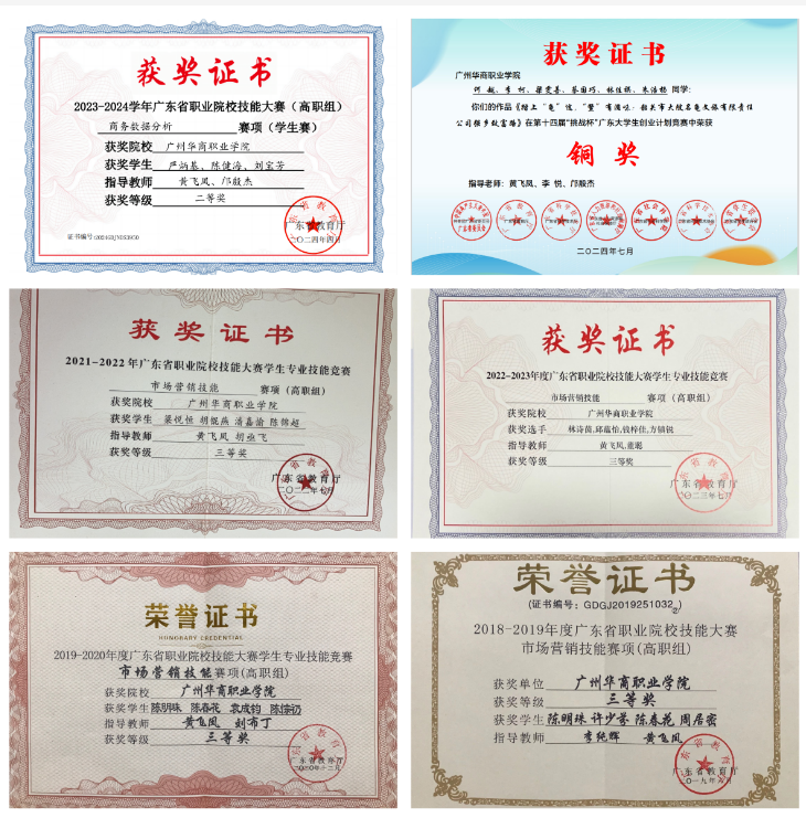 黄老师秉持“以赛促学、以赛促教”的教学理念,将职业技能竞赛和创新创业竞赛深度融入日常教学,取得了显著成效,结出了累累硕果。在比赛训练中她注重培养学生的创新思维和团队协作能力,通过耐心细致的专业技能培训和精神激励,全程陪伴学生进行赛前集训、模拟演练,帮助学生克服畏难情绪,提升技能水平。指导学生参加职业技能竞赛获省赛二等奖1项,三等奖4项;指导学生参加创新创业类竞赛获省赛铜奖1项,校赛二等奖1项;指导学生参加全国营销技能大赛获得国赛二等奖1项。
