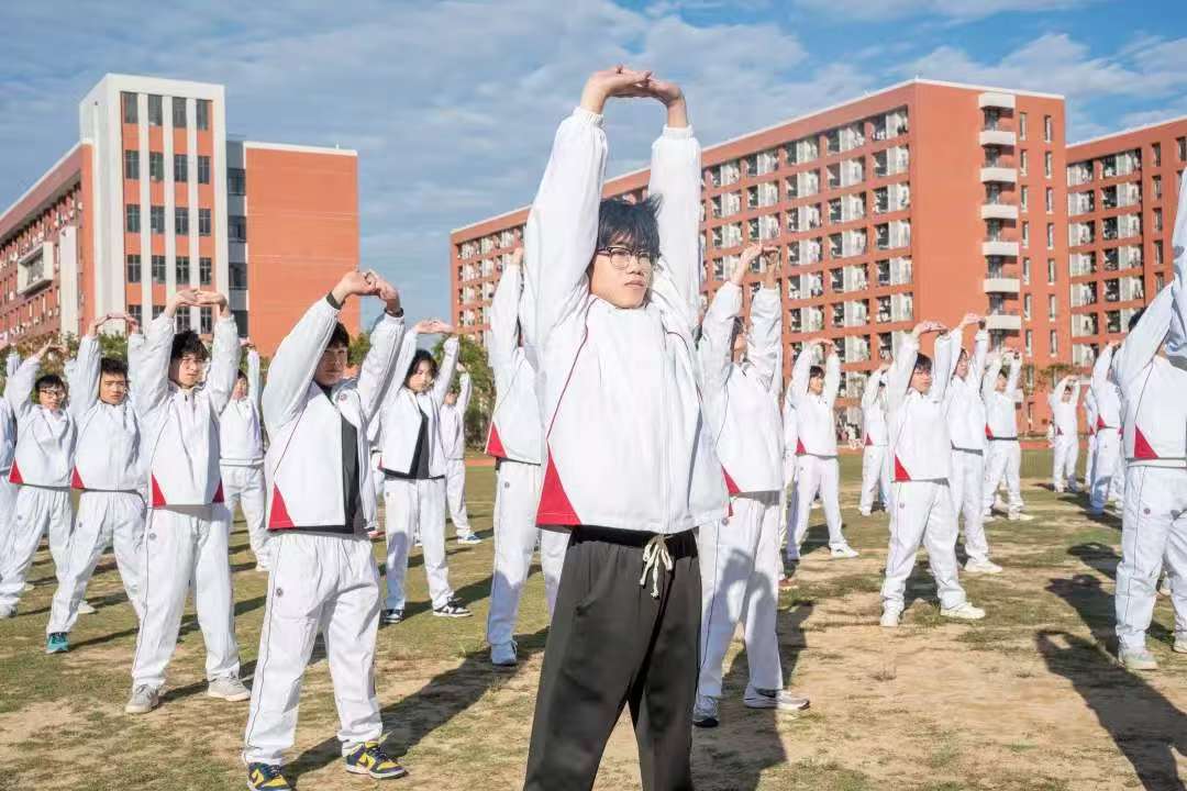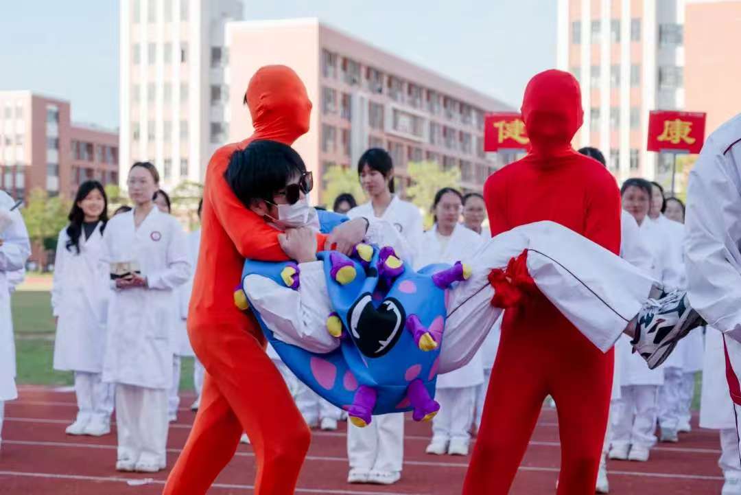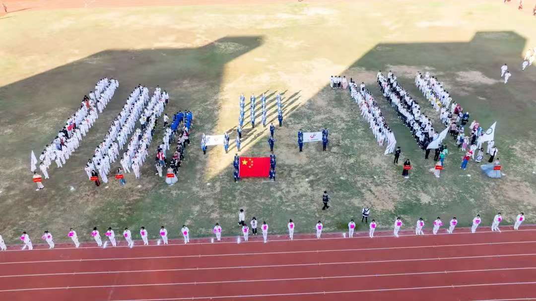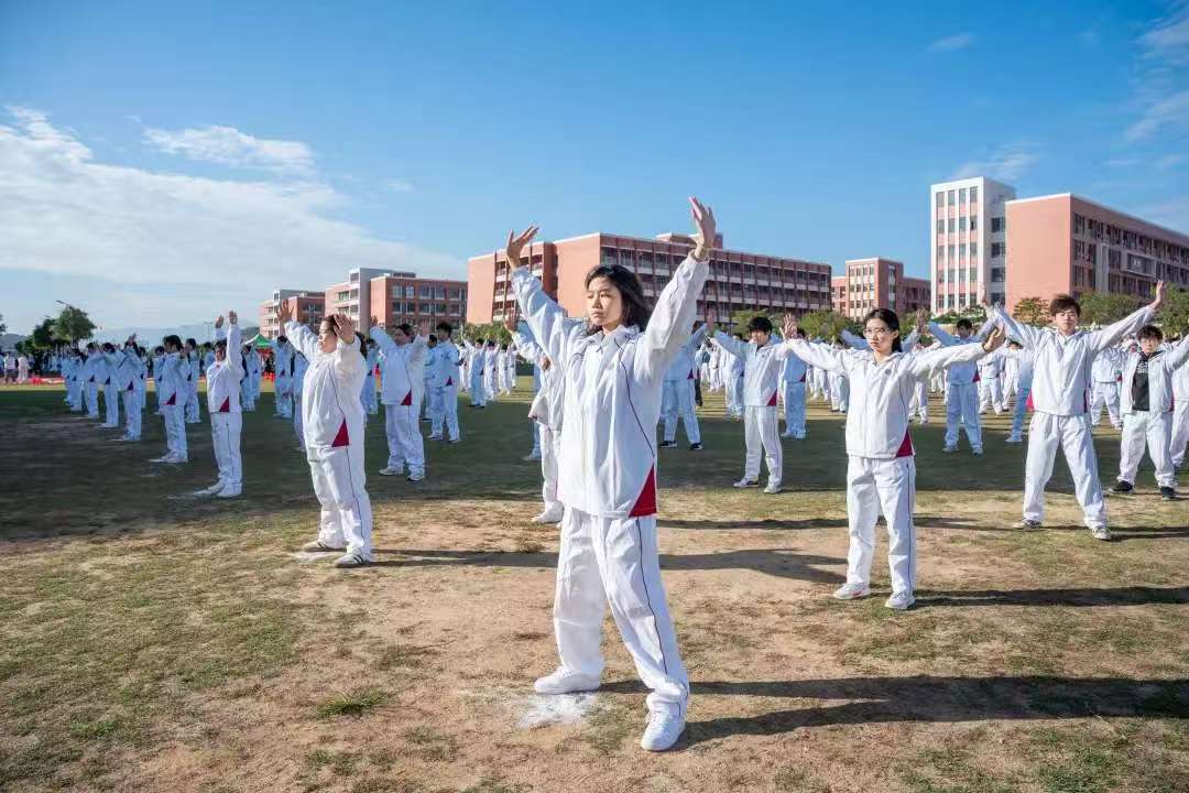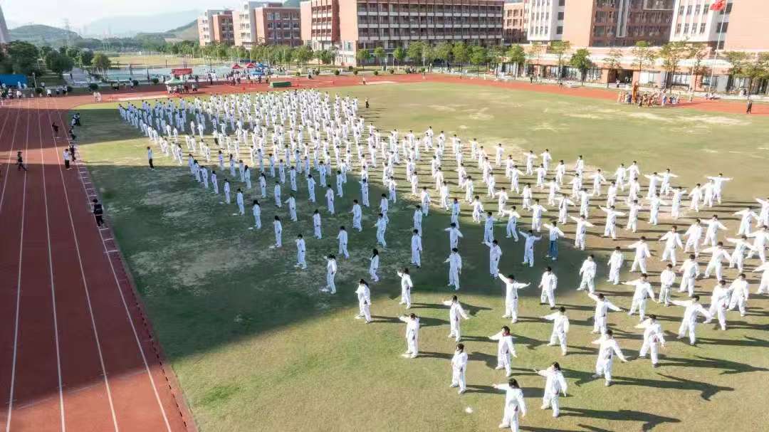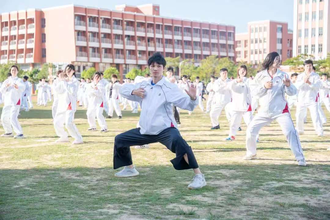 智能制造与汽车学院、建筑与艺术学院、健康医学院的400名学生共同展示了八段锦。他们身着统一的校服,伴随着悠扬的音乐,动作整齐划一,气势恢宏。