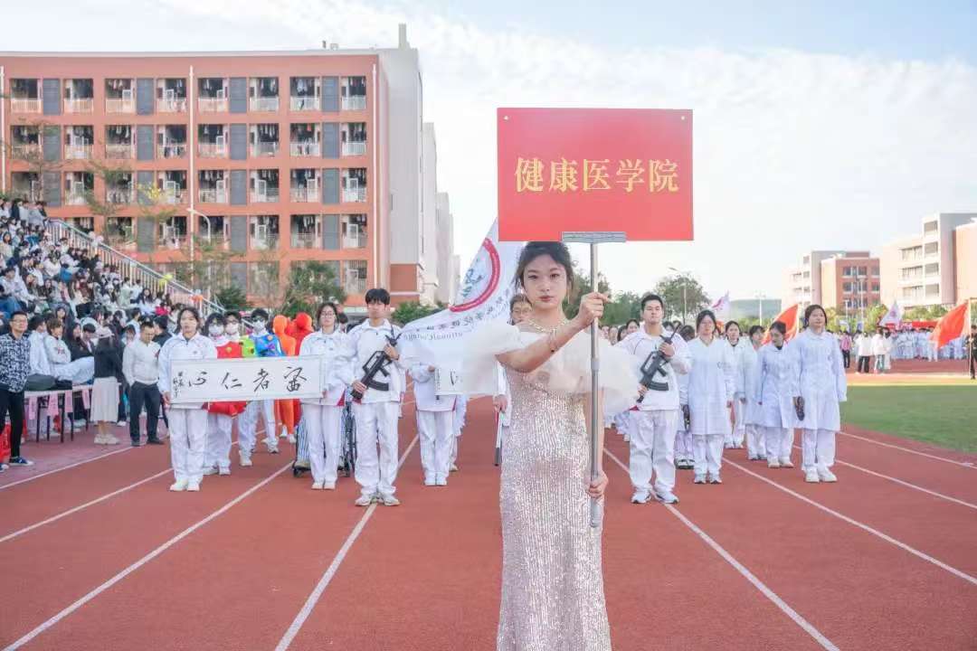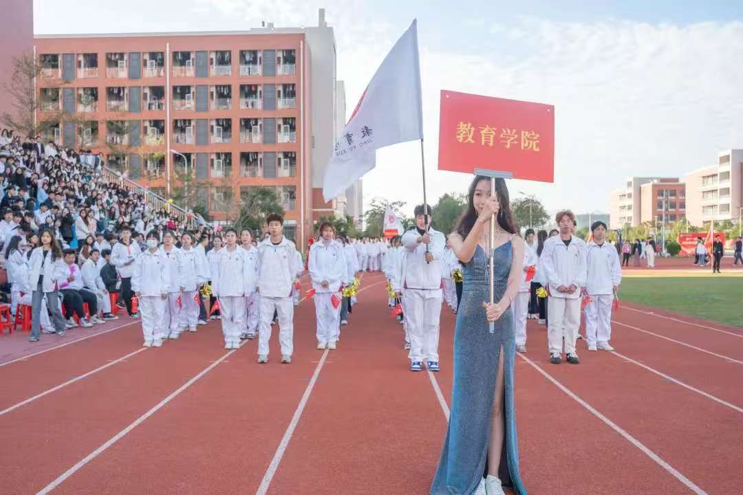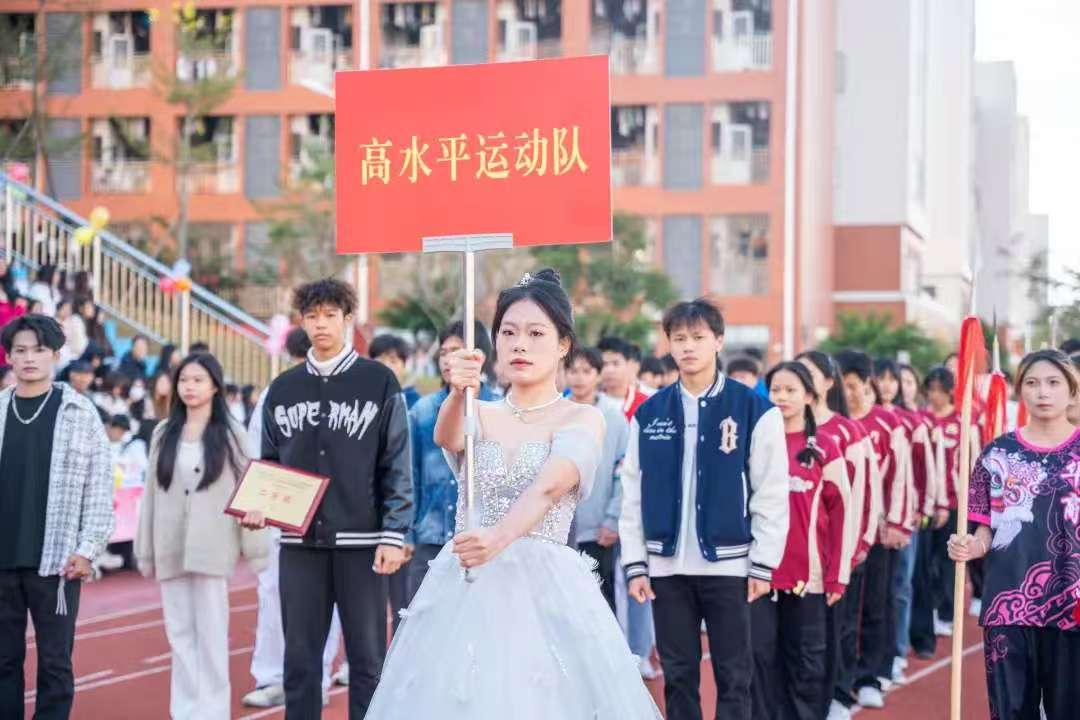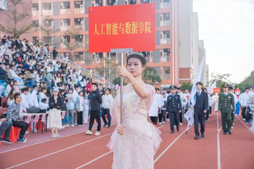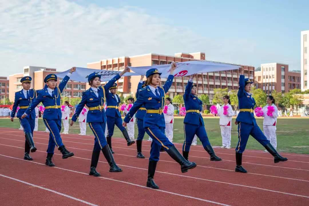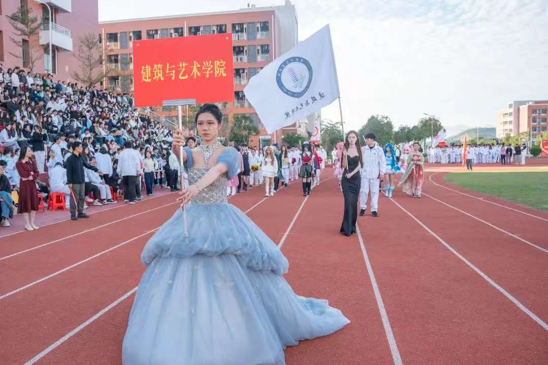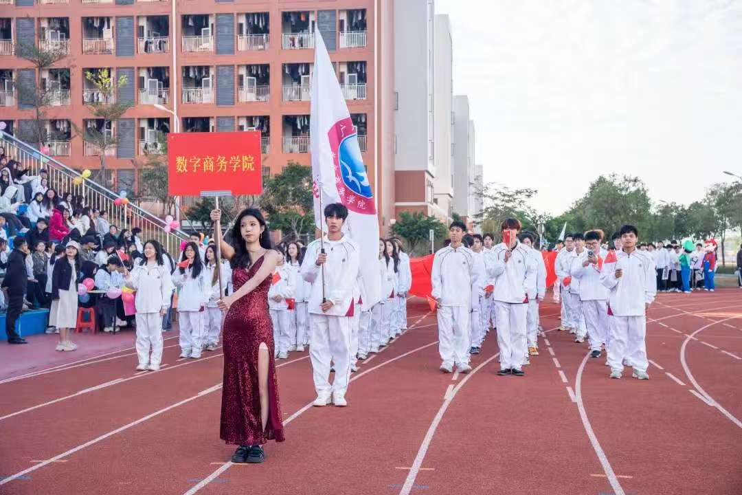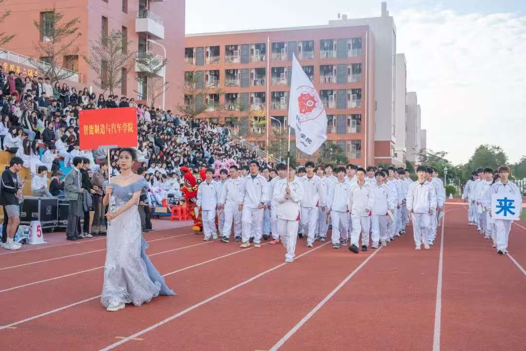 高水平运动队,以及江门校区的7个二级学院方阵,他们带着精心准备的表演,洋溢着青春的笑脸,走向主席台。