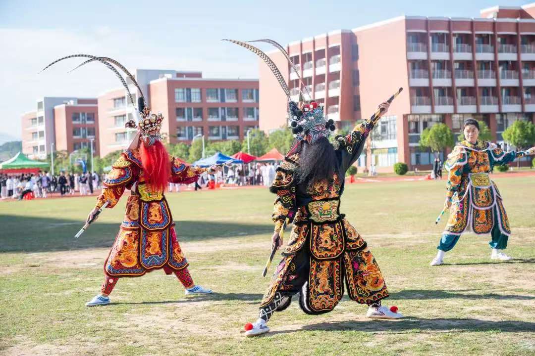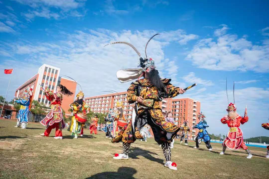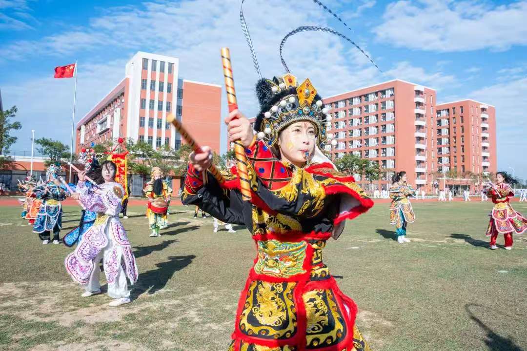 上下飞舞的棍棒在英歌舞社团学生手中如同灵动的游龙,展现出一种独特的韵律与美感。他们每一个转身,每一次跳跃,都凝聚着他们对传统文化的热爱与传承的决心。
