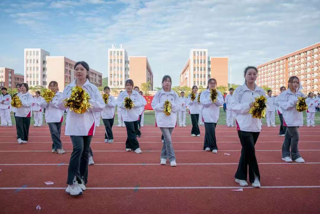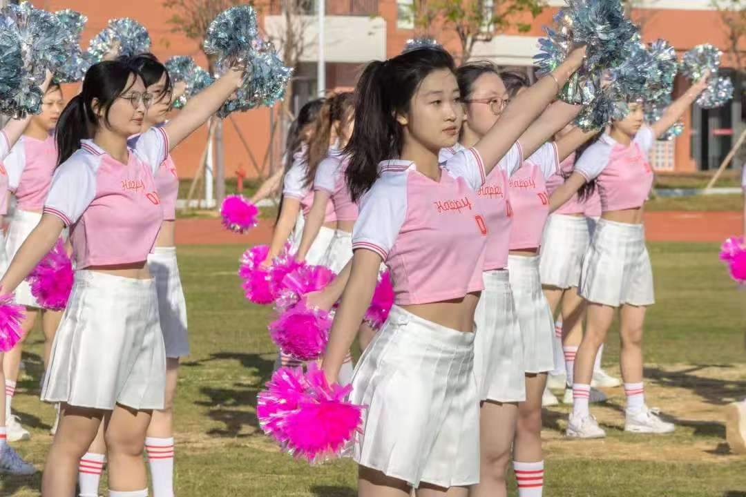 由教育学院、健康医学院、数字财经学院100名同学组成的啦啦操表演队伍,手拿闪耀的花球,脚踏动感的节拍,手臂跟着动感的节拍,阳光下的舞动,就是青春最好的模样。