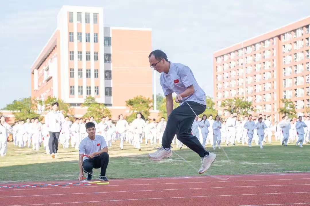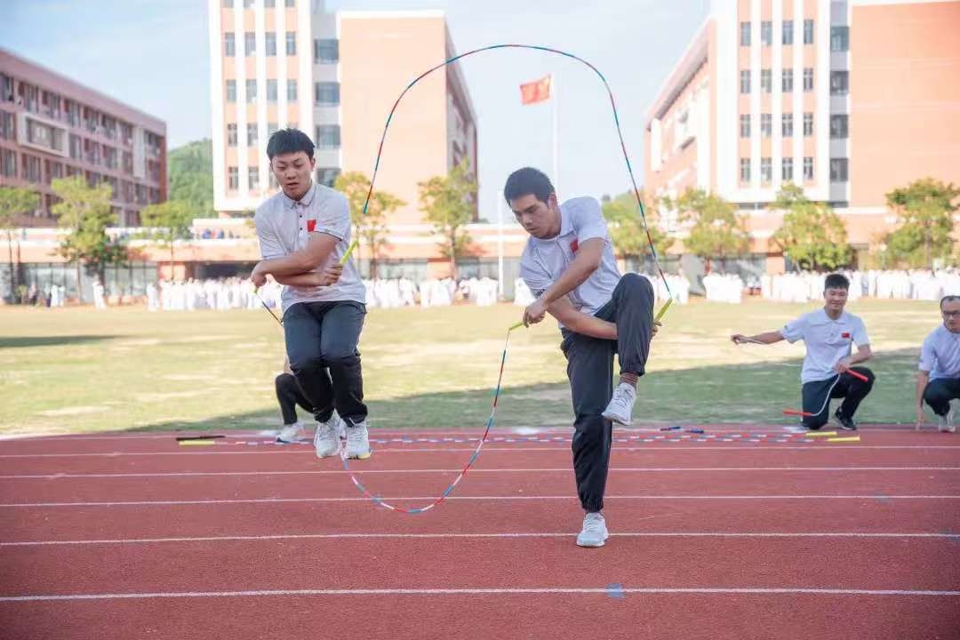 岑小林、张崇杨、谢凯宇、陈嘉伟、江嘉煜五位跳绳世界冠军一出场,观众席上传来阵阵掌声。他们精彩的跳绳展演,激发了在场师生对跳绳项目的热情。
