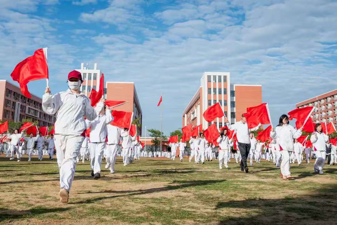 “没有共产党就没有新中国”,健康医学院、智能制造与汽车学院、人工智能与数据学院的400名同学为我们呈现了一场宏大的红旗操表演,让我们以青春的名义,以热血的誓言,共同见证了一场关于信仰与梦想的盛宴。