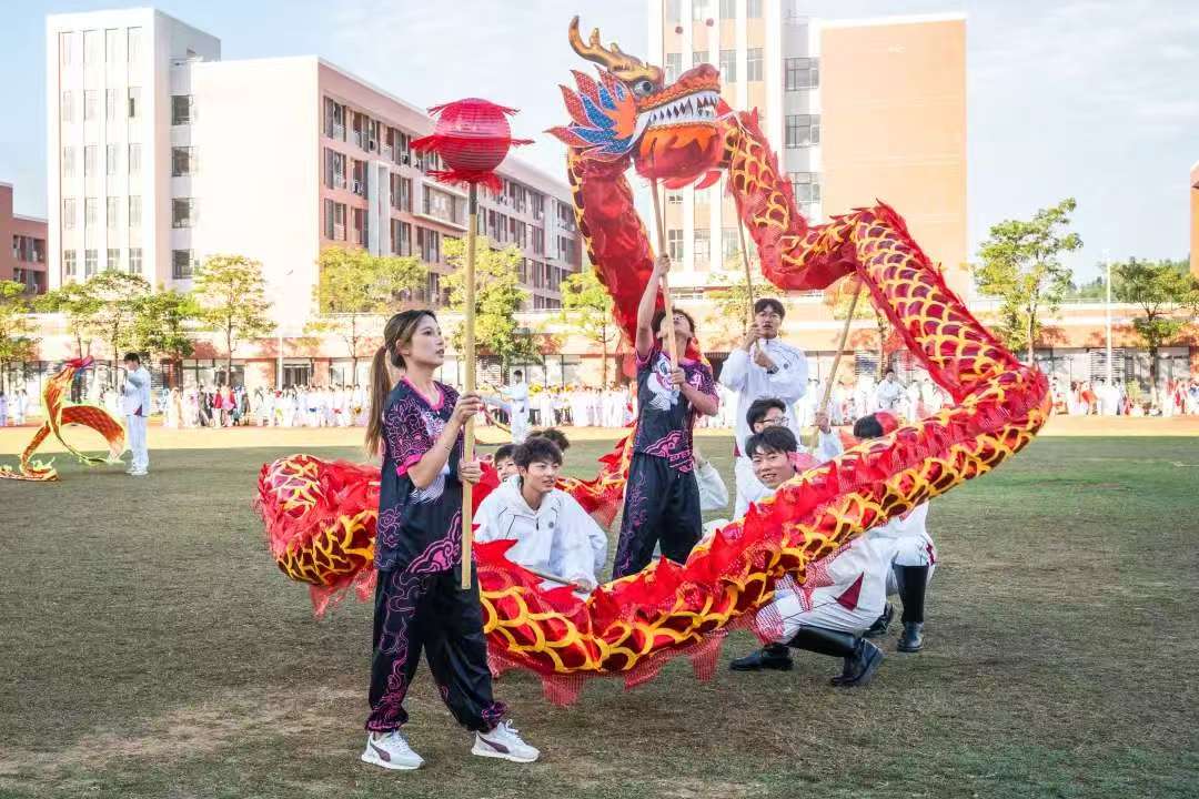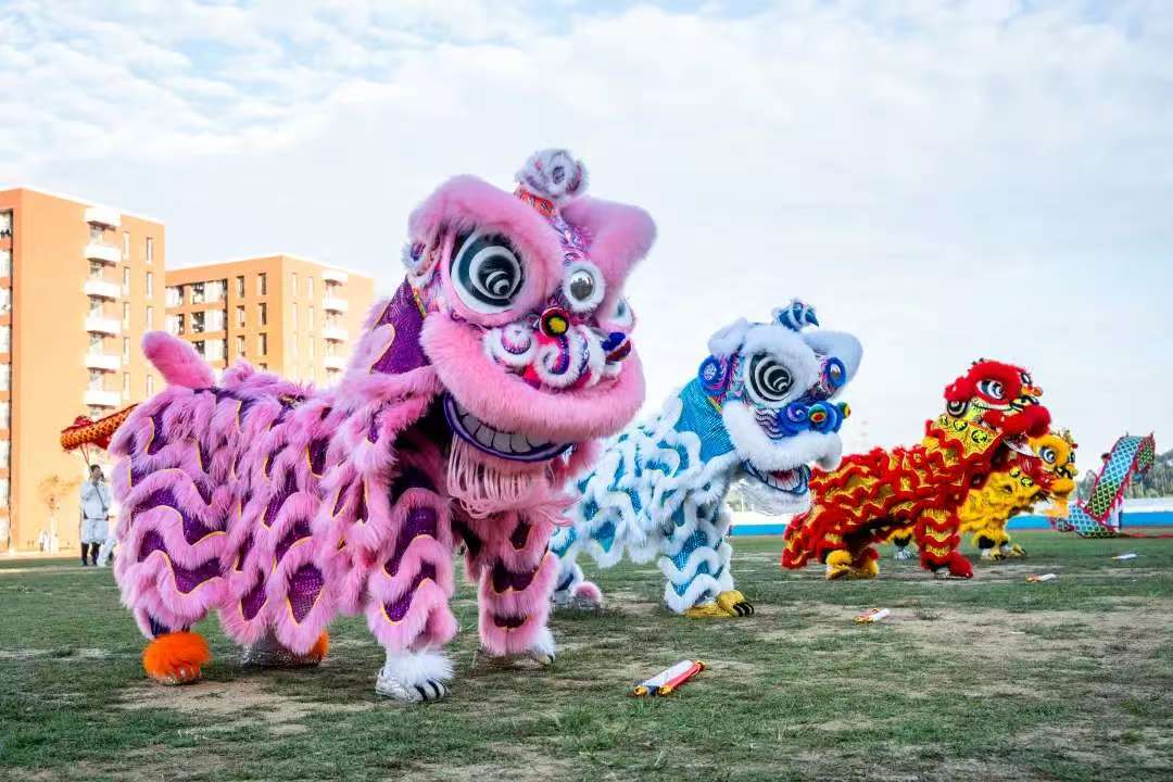 “咚咚咚咚咚锵”鼓声响起,锣声跟随,粉狮子、白狮子、红狮子、黄狮子踏着铿锵的锣鼓声欢腾起舞。由通识教育中心带来的暖场表演 《龙腾狮跃彩韵扬》,舞龙和彩带龙模仿龙的升腾、盘旋、翻滚而动;狮子矫健的身姿,轻盈的跳跃,配合着鼓点不停变换着动作,威风凛凛又俏皮可爱。精彩绝伦的表演、喜气洋洋的氛围让在场每一位观众情绪高涨。