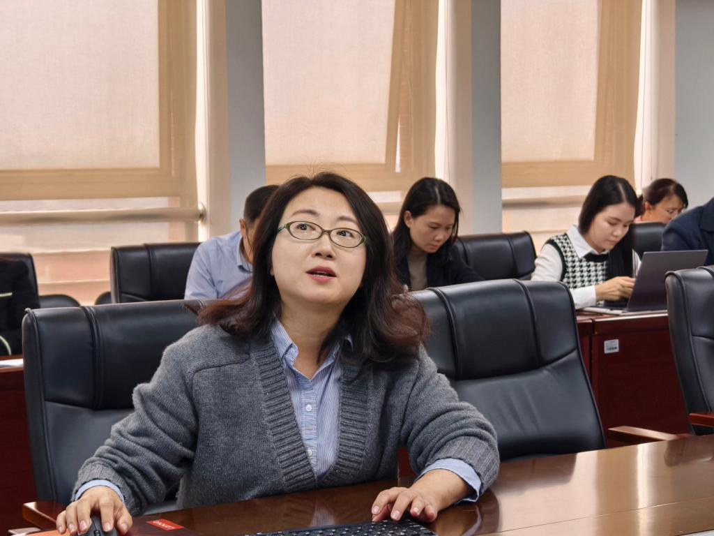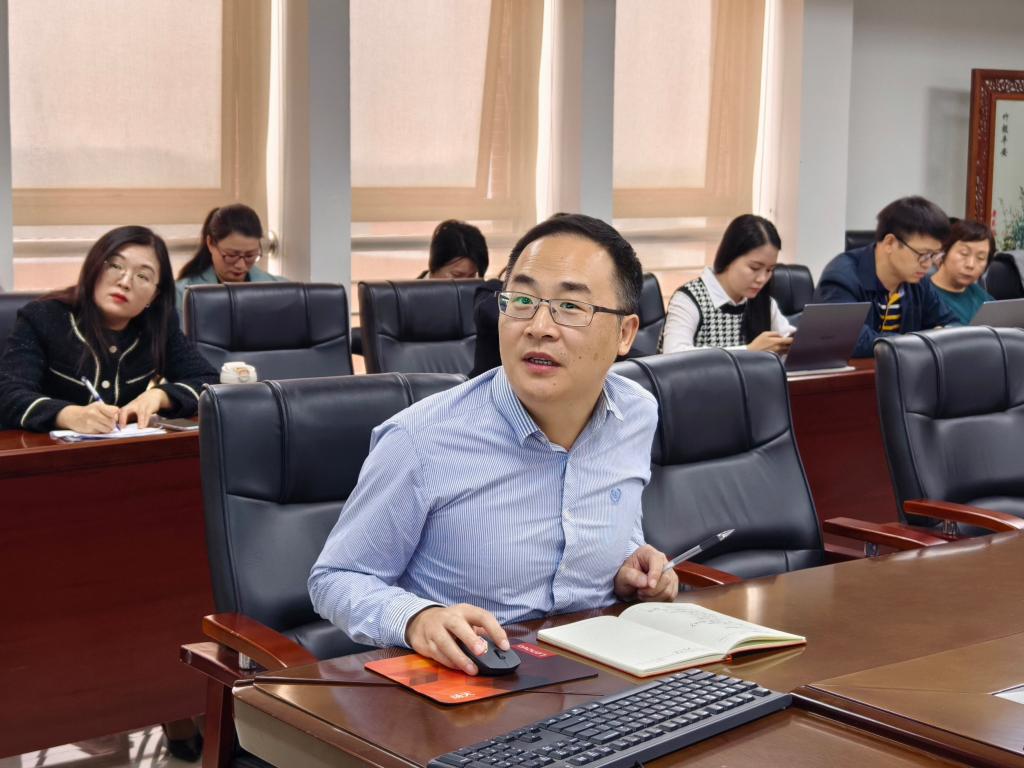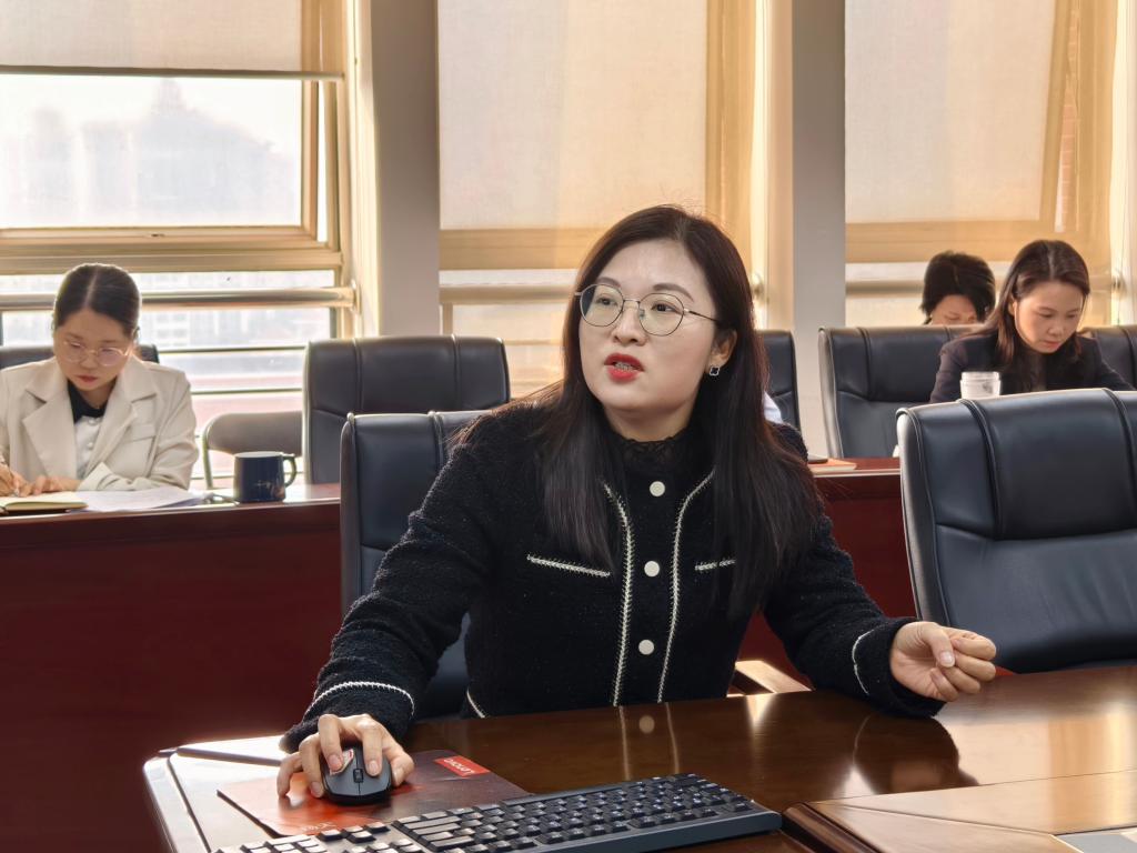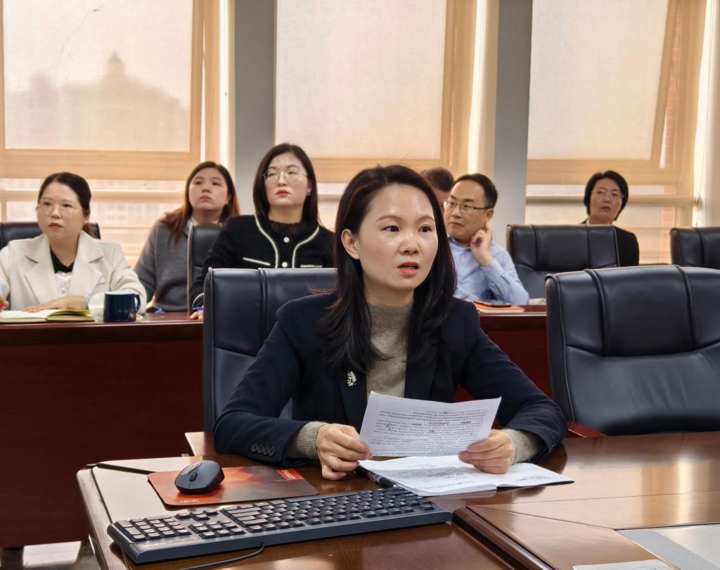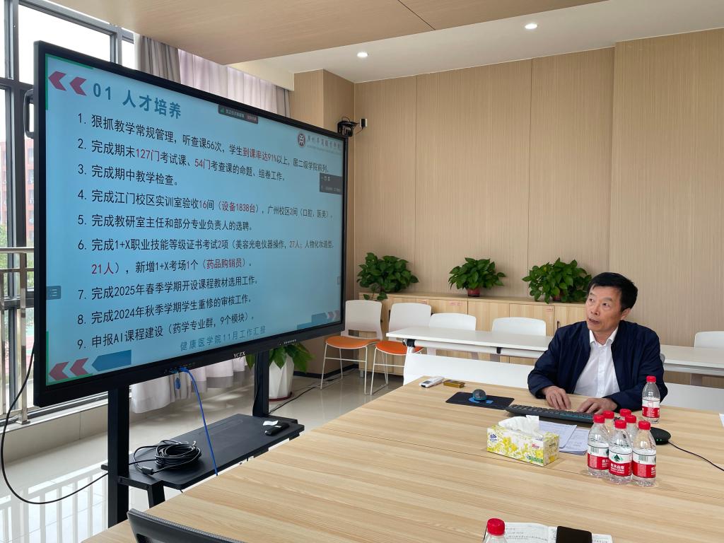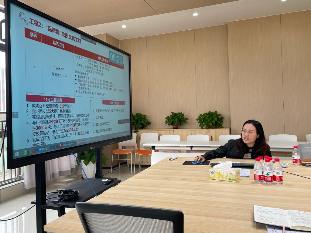 教学科研部陈柳红汇报内涵建设、师生竞赛、科研情况,黄俊斌作补充汇报。