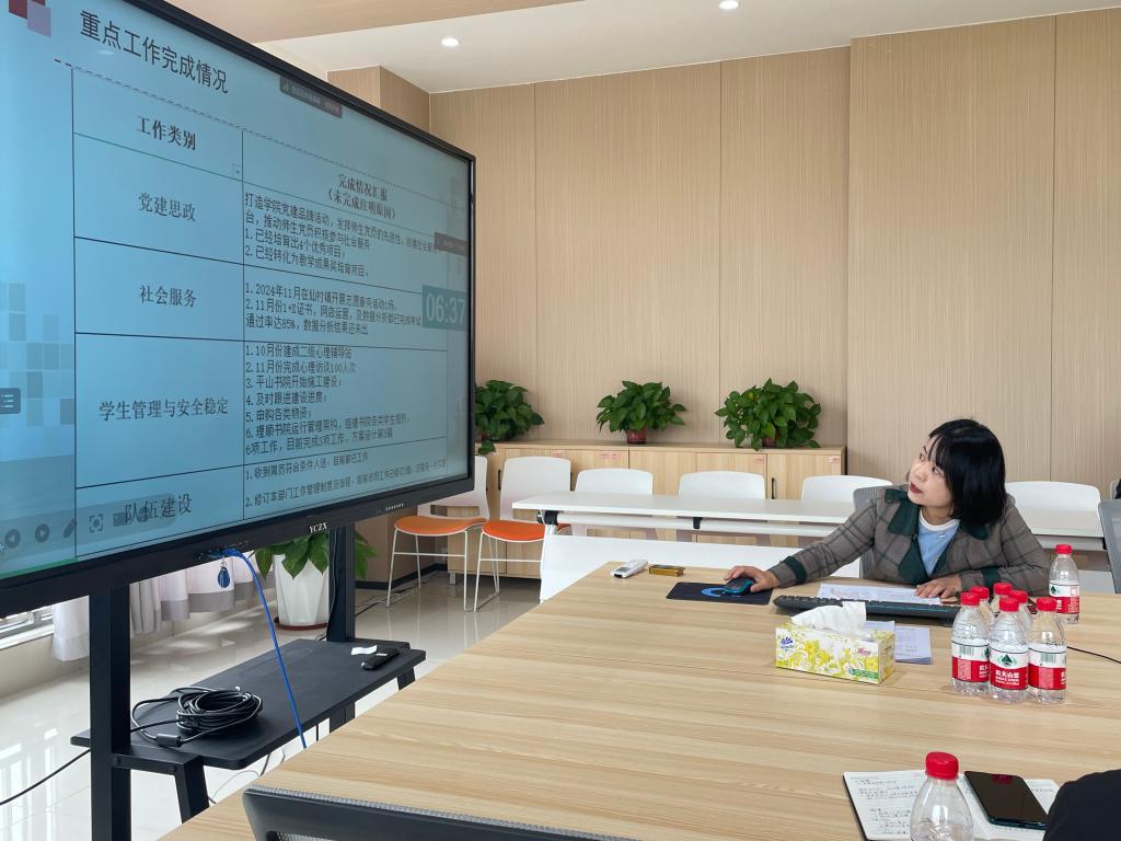 人事与质量部廖丽丽汇报11月份学校工作计划推进情况。赵齐阳作补充汇报。