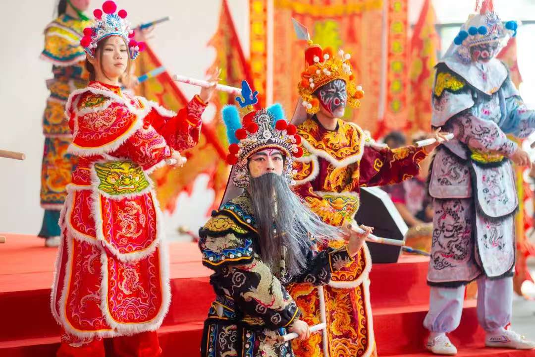 一系列传统与现代交融的文化表演成为全场亮点。英歌舞以其独特的步伐和豪迈的气势震撼开场,鼓点激昂,舞者身着彩衣,手执短棍,展现了力与美的完美结合。